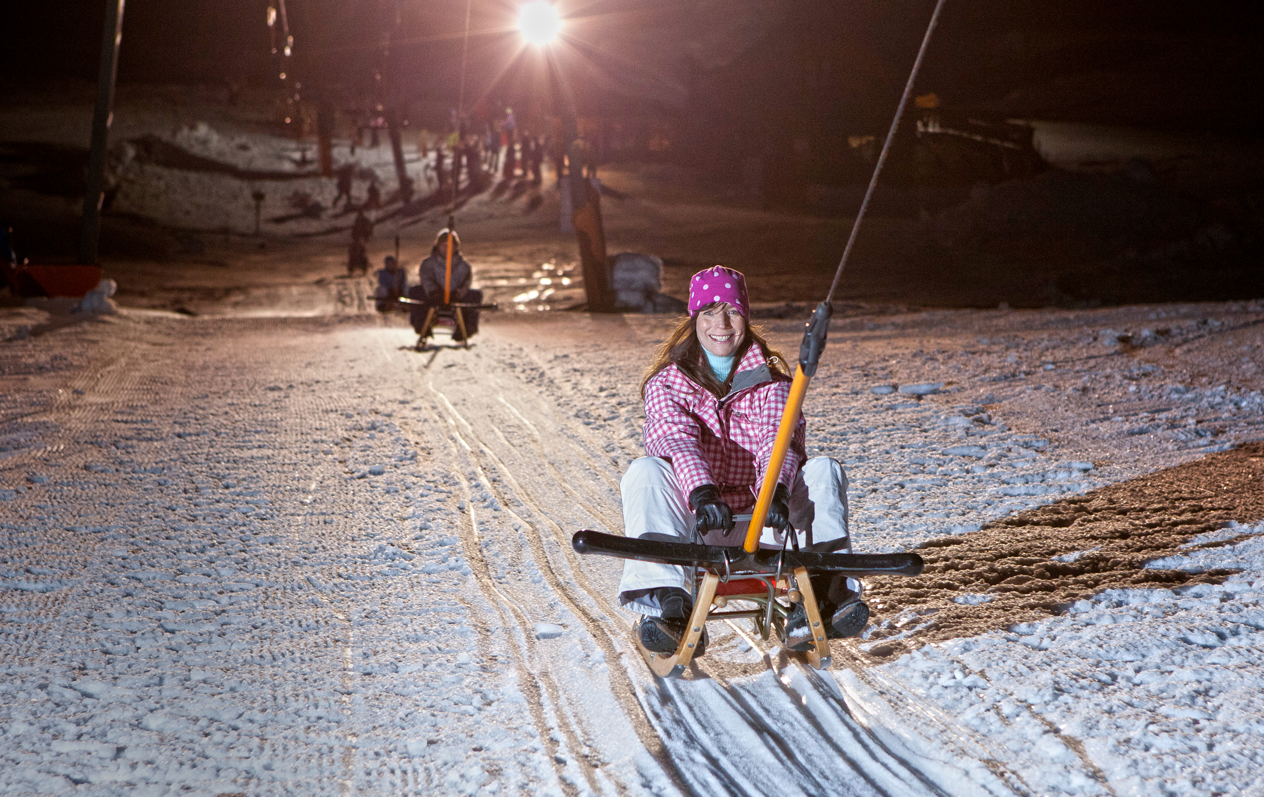 2. Bequem mit dem Lift auf den Berg hinauf und flott auf der Rodel hinunter