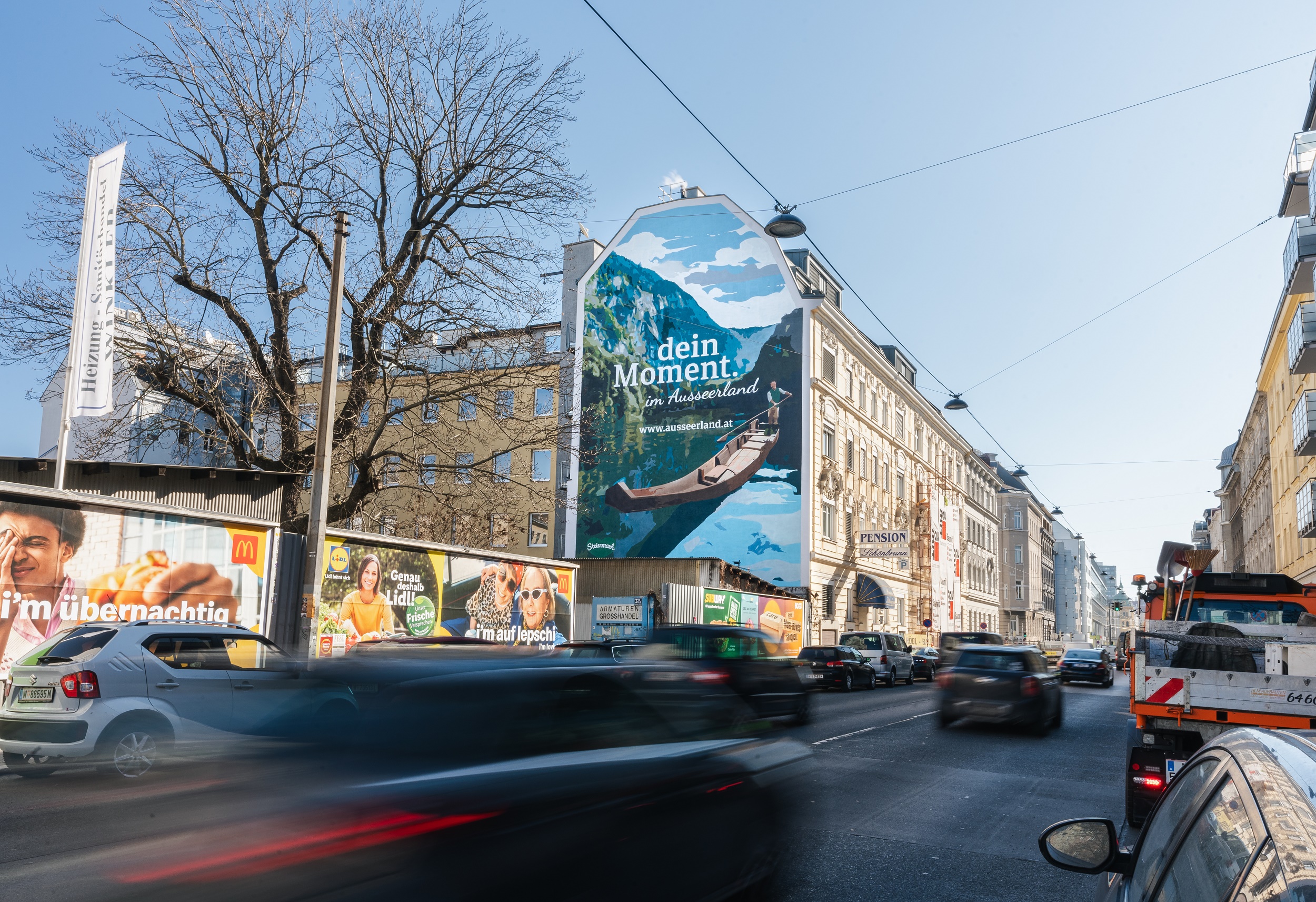 Pamela Binder, Geschäftsführerin des Tourismusverbandes, zeigt sich stolz: “Rechtzeitig vor dem Steiermark Frühling in Wien möchten wir mit unserem großflächigen Street Art Mural das einzigartige Natur- und Kulturerlebnis des Ausseerlandes direkt in die Bundeshauptstadt bringen. Die Gestaltung der Hausfassade in der Schönbrunner Schlossstraße ist eine Einladung, unsere Region mit all ihren Facetten zu entdecken – sei es beim traditionellen Plättenfahren, beim Wandern in der beeindruckenden Berglandschaft oder beim Eintauchen in unsere gelebte Tradition. In Zusammenarbeit mit der Firma Popp Vision haben wir ein starkes visuelles Zeichen gesetzt, das die Sehnsucht nach unvergesslichen Momenten in der Natur weckt. Wir freuen uns darauf, noch mehr Menschen für die Schönheit des Ausseerlands zu begeistern“