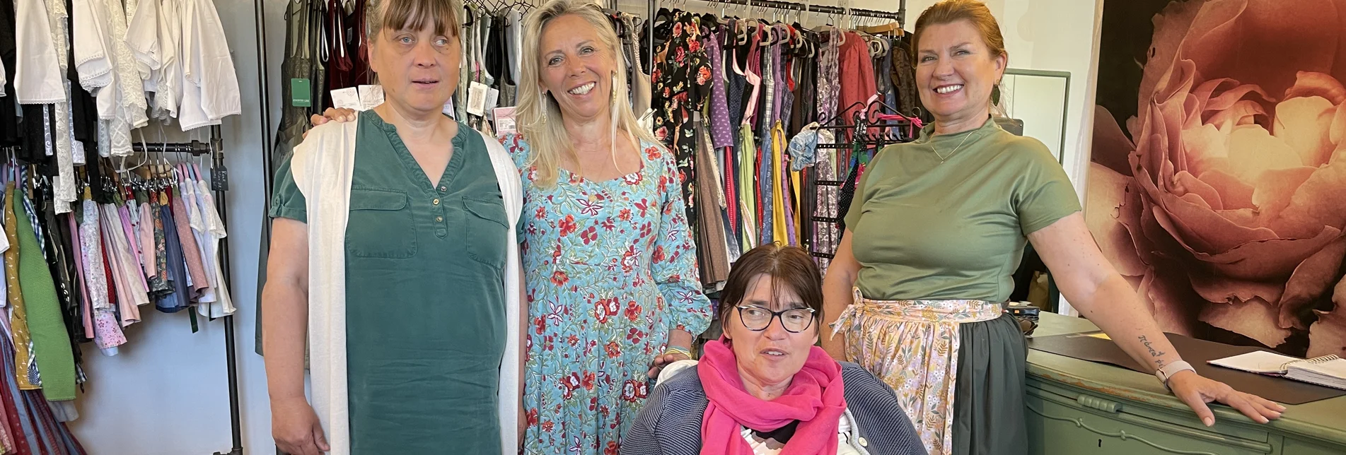 Neben Coco zählt auch Lydia zum Gründerinnenteam des „Vergissmeinnicht“. Sie ist im Brotberuf Behindertenbetreuerin bei der Lebenshilfe Ausseerland, wodurch die Kooperation zustande kam. Bereits beim Auftakt zum Geschäft war die Lebenshilfe Teil davon, wie Lydia und Coco erzählen: „Der Startschuss war eine Modeschau in der Oase Berta, also der Lebenshilfe, das war das Maturaprojekt einer unserer Töchter. Die Klienten der Lebenshilfe haben die Mode damals vorgeführt“. Die fünf Freundinnen sammelten Trachten, die sie umgearbeitet und wieder verkauft haben. „Wir haben etwa Taschen aus alten Trachtenstoffen und Halsbänder mit Samtrosen darauf genäht“, sagt Coco.