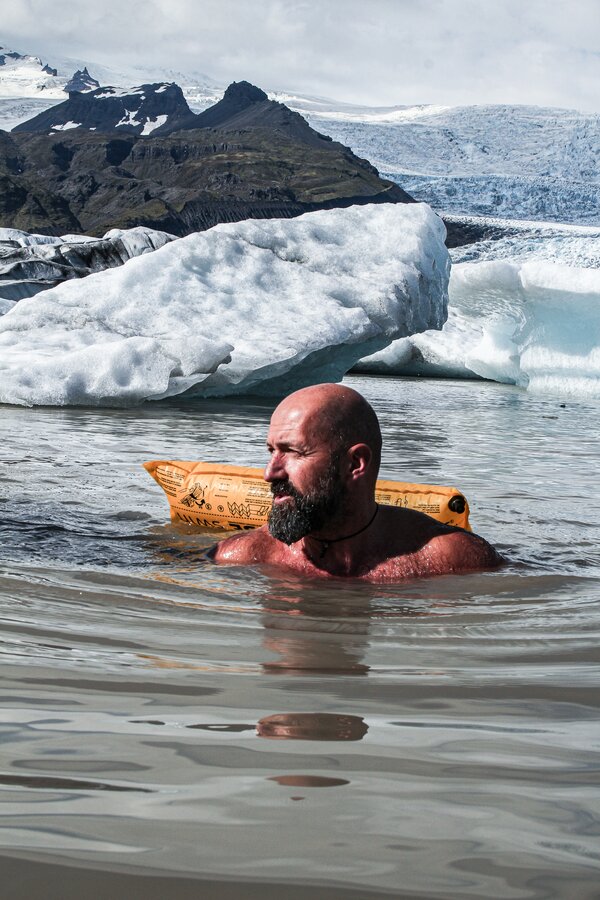 „Fast jede und jeder kann Eisbaden oder -schwimmen. Beim ersten Mal oder wenn starke Strömungen vorherrschen sollte man nicht alleine reingehen. Ich empfehle zudem, eine Schwimmboje mitzunehmen. Sollte etwas passieren, kann man sich jederzeit daran festhalten“, sagt er. Die Furcht vor dem kalten Wasser spiele sich seiner Ansicht nach nur im Kopf ab. „Es kann nichts passieren, wenn man sich Zeit lässt und Schritt für Schritt hineingeht. Stehenbleiben ist keine Option. Man merkt, dass nach ein paar Sekunden die Füße warm werden – und dann geht man weiter.“