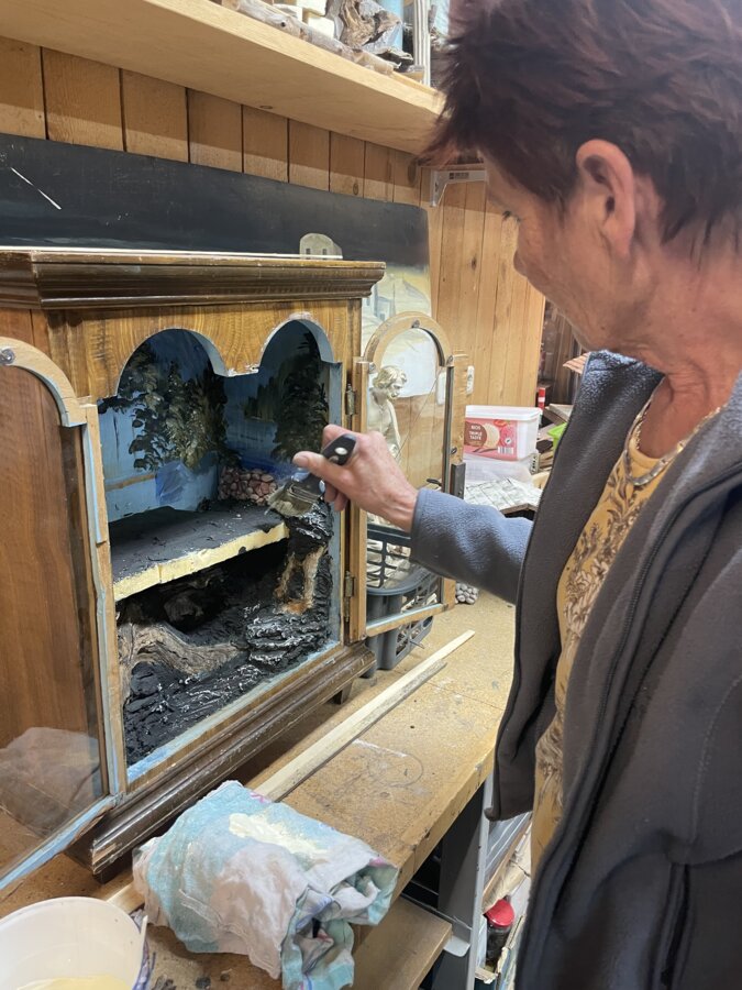 Das Haus und die Werkstatt von Liesi sind voll mit Krippen und Zubehör. Auf Anfrage baut sie auch für Interessenten welche, die meisten behält sie aber für sich. „Das Besondere am Krippenbauen ist, dass ich meiner Kreativität freien Lauf lassen und jede Krippe so gestalten kann, wie ich möchte“, betont sie strahlend. Auch dieses Jahr baut sie wieder selbst eine: „Ich kann einfach nicht anders“, meint sie lachend.