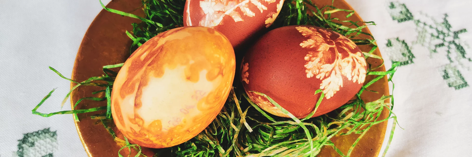 Der Klassiker unter den natürlichen Eierfärbe-Methoden ist die Zwiebelschale. Wir haben zwei verschiedene Varianten ausprobiert.