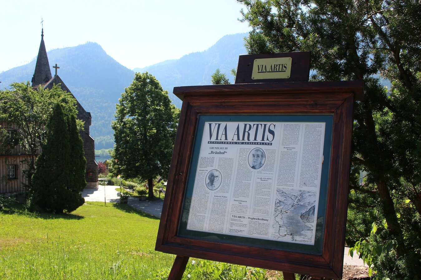 Station VII, den Endpunkt, erreicht man in etwa 1,5 Kilometer.Man kehrt zurück zum Gehweg auf der rechten Straßenseite Richtung Gößl und wandert geradeaus durch eine Wohnsiedlung, hält sich links und setzt die Wanderung am Gehweg bis zum Kreisverkehr in Gößl fort. Hier befinden sich rechts die Schiffsanlegestation und links die Bushaltestelle. Die Wanderung geht links über die Zufahrtsstraße und führt vorbei an der kleinen Dorfkirche. Sie ist das Eigentum von 14 Gößler Familien. Gößl ist ein altslawisches Wort und bedeutet Ziegenweidegebiet. Nach 200 Meter erreicht man die links auf dem kleinen Gößler Dorfplatz liegende Station VII. Hier wird neben Erzherzog Johann von Österreich auch an Konrad Mautner, Alexander Baumann und Matthias Johann Ranftl erinnert. Sie alle schöpften Kraft aus dieser vielfältigen, bezaubernden Landschaft. Ihr Weitblick, ihre Werke und Taten wurden ein unverzichtbarer Teil der lebendigen Volkskultur des Ausseerlandes. Zurück zum Ausgangspunkt kommt man entweder mit dem Linienschiff, Bus oder Taxi.