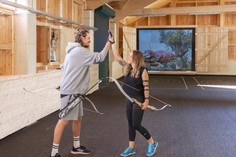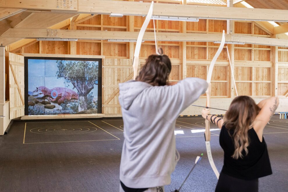Verbringen Sie unterhaltsame und spannende Stunden mit einer der ältesten Sportarten der Welt an einem außergewöhnlichen Ort. 4D-Tiere (Flugdrachen, Dinosaurier, Fantasie- oder Zielobjekte uvm) bewegen sich über die 4D -Target - Schaumwand, auf die mit einem speziellen Beamer projiziert wird.