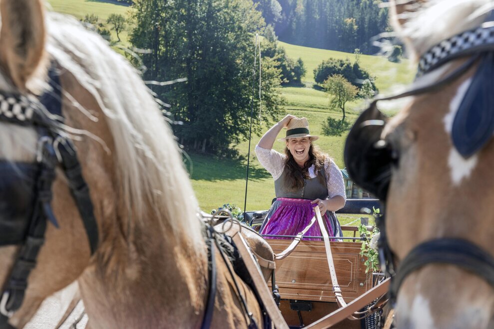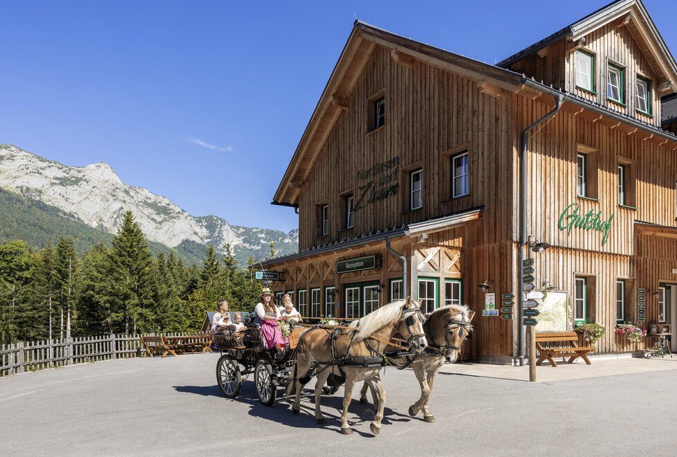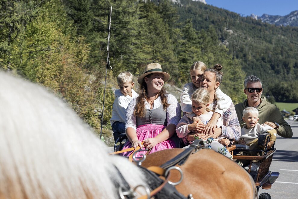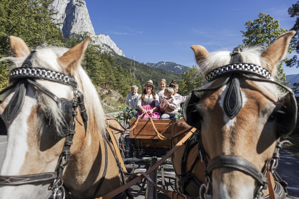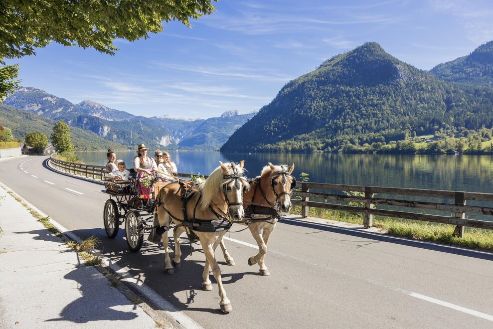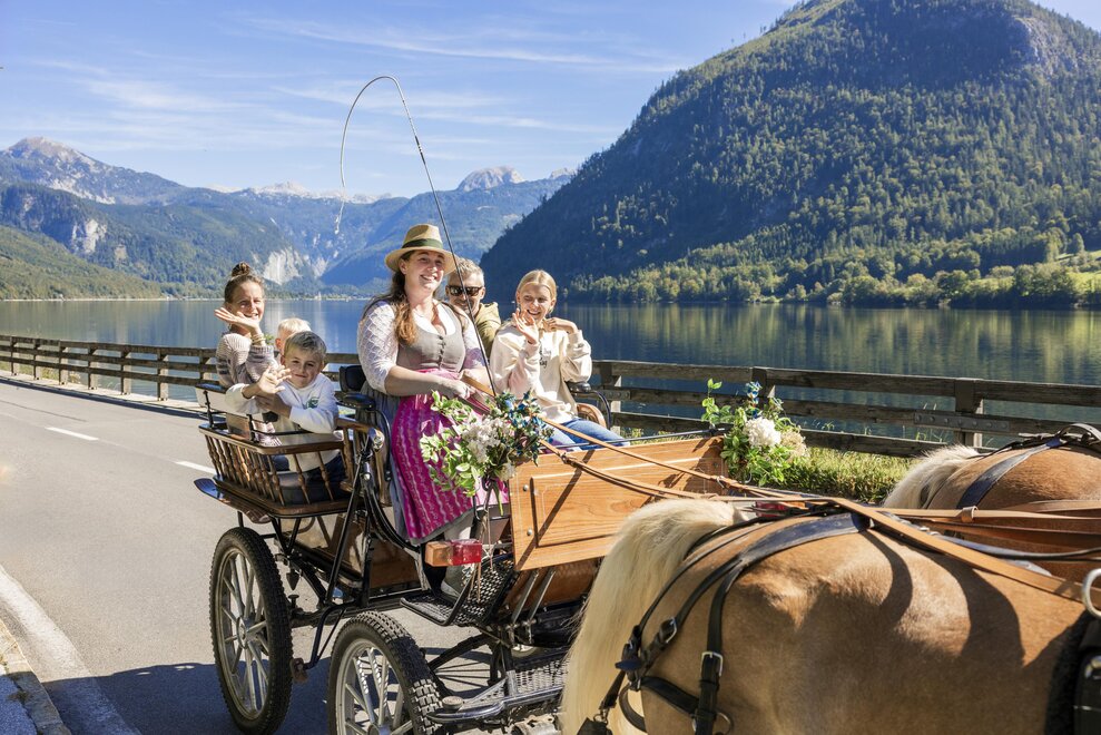 Cynthia und die beiden hübschen Haflinger Willi und Flocki kutschieren Sie zuerst den See entlang durch den wunderschönen Ort Grundlsee. Gemütlich den Grundlsee entlang trabend, zieht das traumhafte Seen- und Bergpanorama vorüber. Über den entzückenden Ortsteil Gaiswinkl geht es wieder zurück.