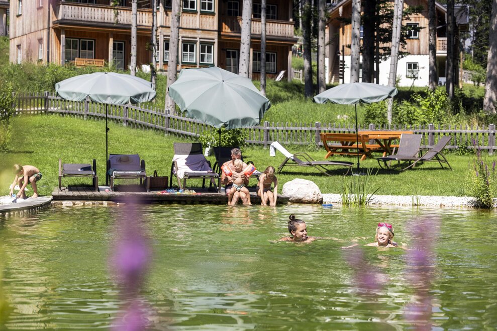 Im Sommer laden der Naturbadeteich im Dorf und der Badeplatz am Grundlsee (nur zehn Gehminuten entfernt) zum Schwimmen ein.