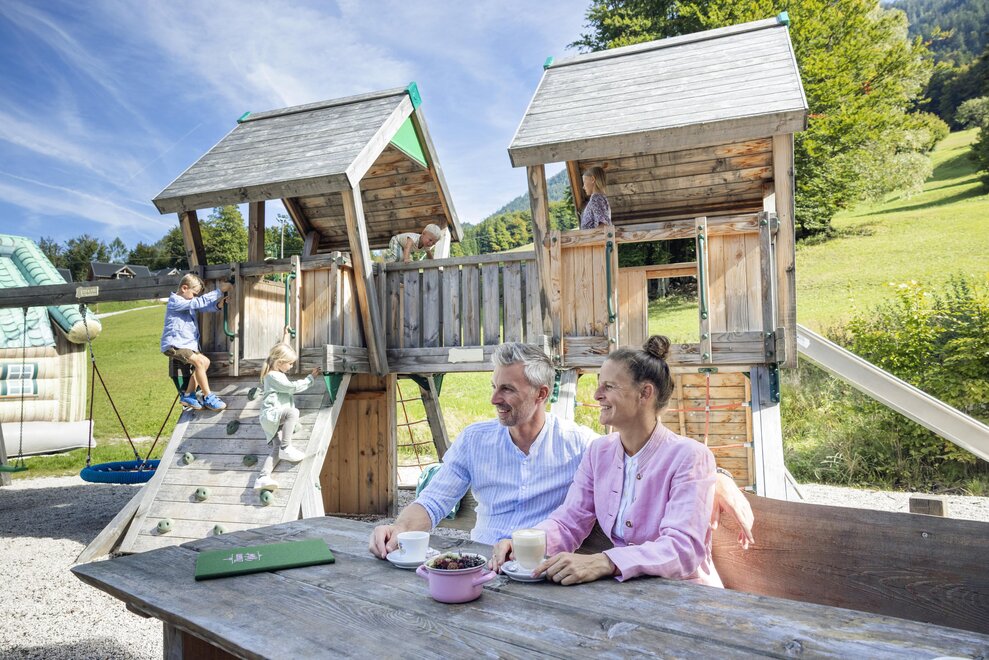 Im Zloam Wirt genießen Gäste bodenständige Ausseer Küche auf zwei Etagen oder auf der Panoramaterrasse mit Blick auf den Spielplatz.