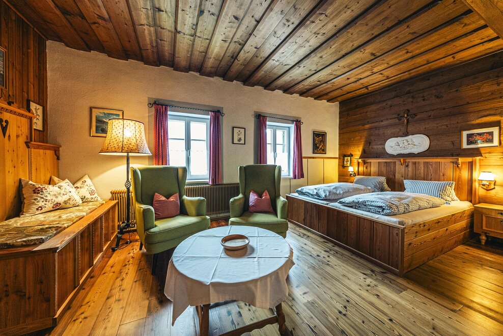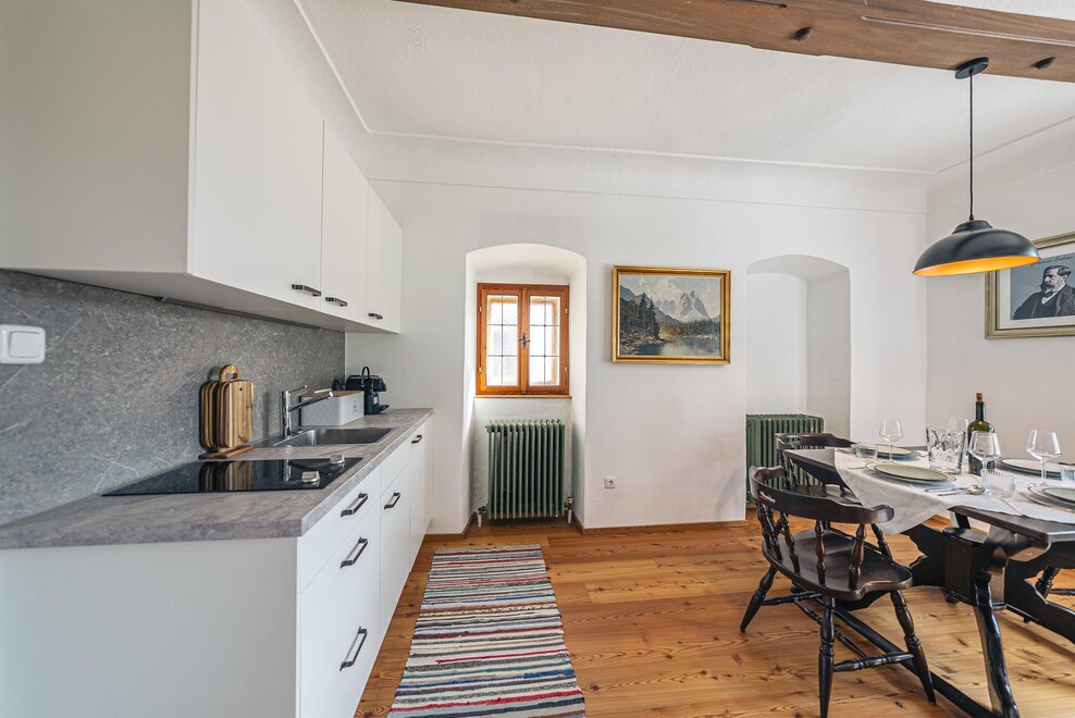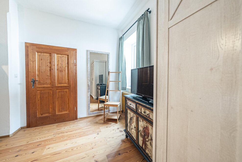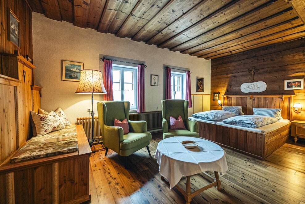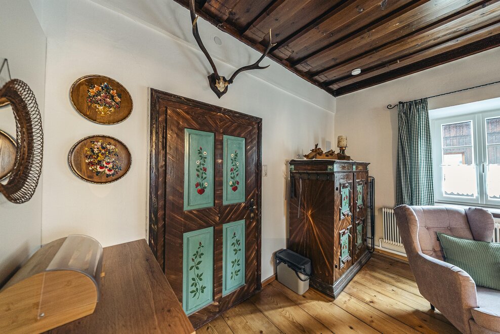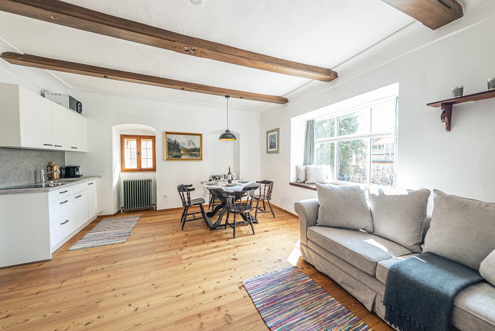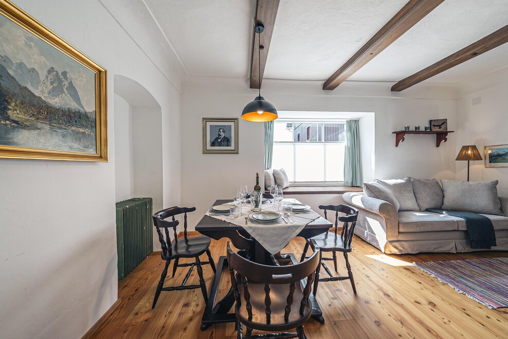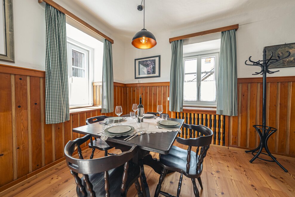 Die Richard Strauss Suite ist das größte, im ersten Stock gelegene Appartement im SIEGLGUT. Die 2-Zimmer Suite wurde neu renoviert und ist mit einer großen Küche im süd-westlichen Wohn-/Essraum und einem geräumigen Bad/WC Richtung Loser ausgestattet. Im großen Schlafraum steht ein Doppelbett und ein ausziehbares Sofa für weitere 2 Personen zur Verfügung. Im Wohn-/Essraum befindet sich die neue Küche, ein geräumiger Esstisch und ein gemütliches Sofa, das zum Verweilen einlädt. Die herrlichen alten Holzdecken und -böden und die herrschaftliche Einrichtung strahlen den besonderen Flair unseres alten Gutsgebäudes aus. Ideal auch für Familien (2 Erwachsene plus 2 Kinder) oder Pärchen, die es räumlich großzügiger lieben.