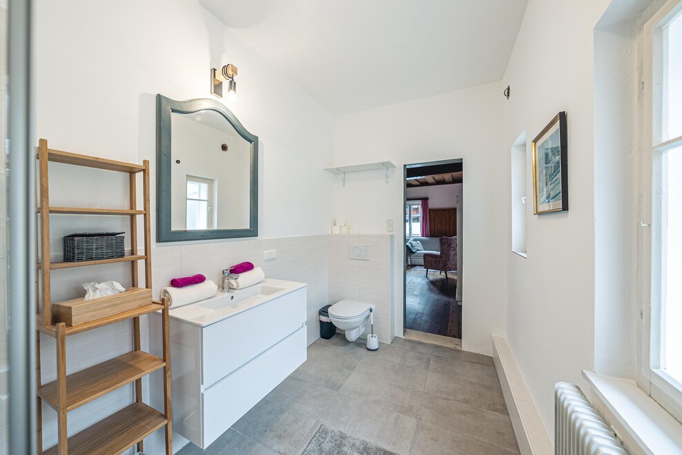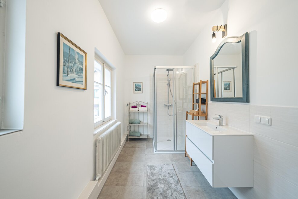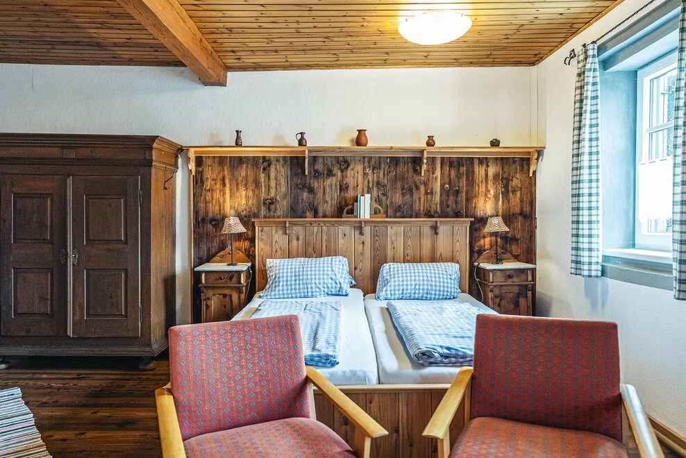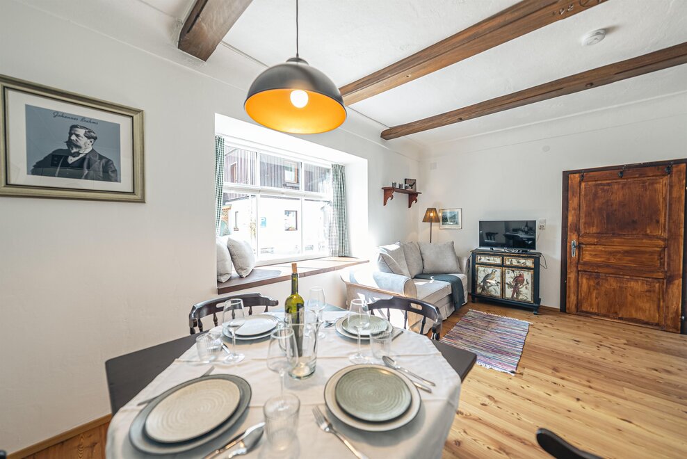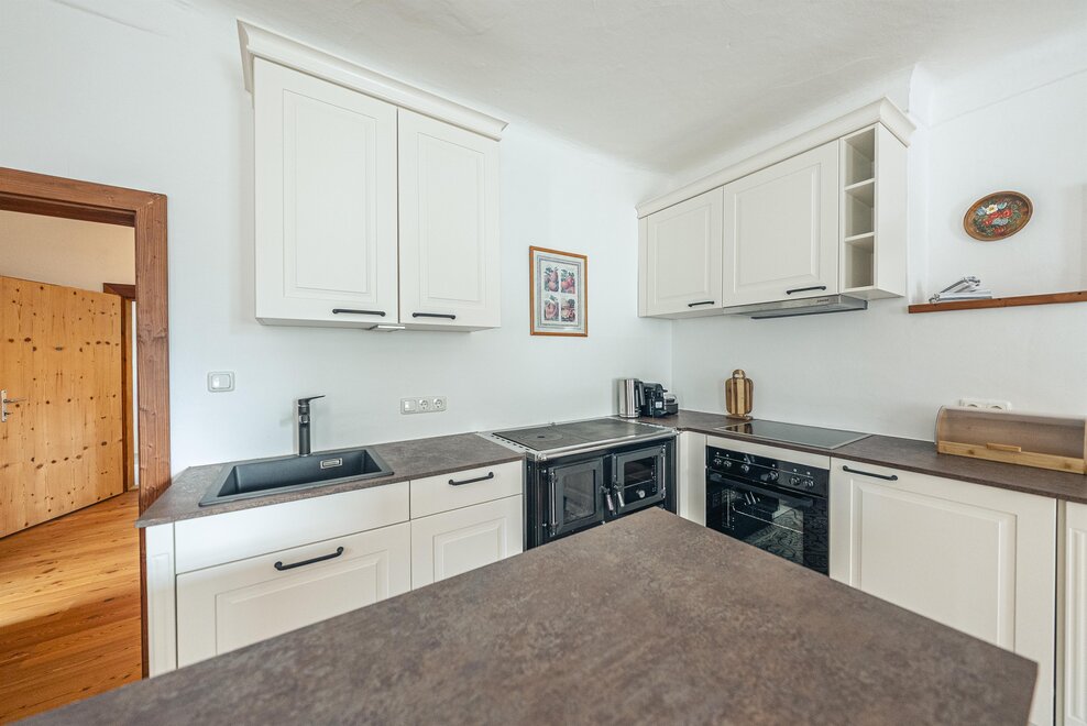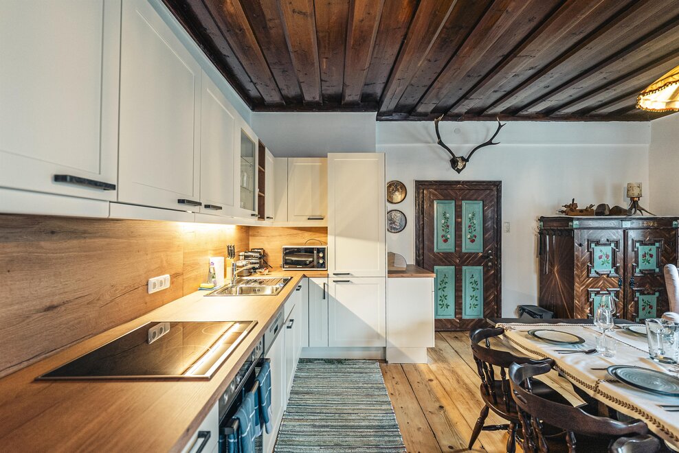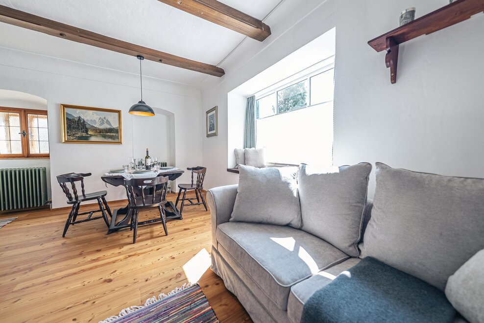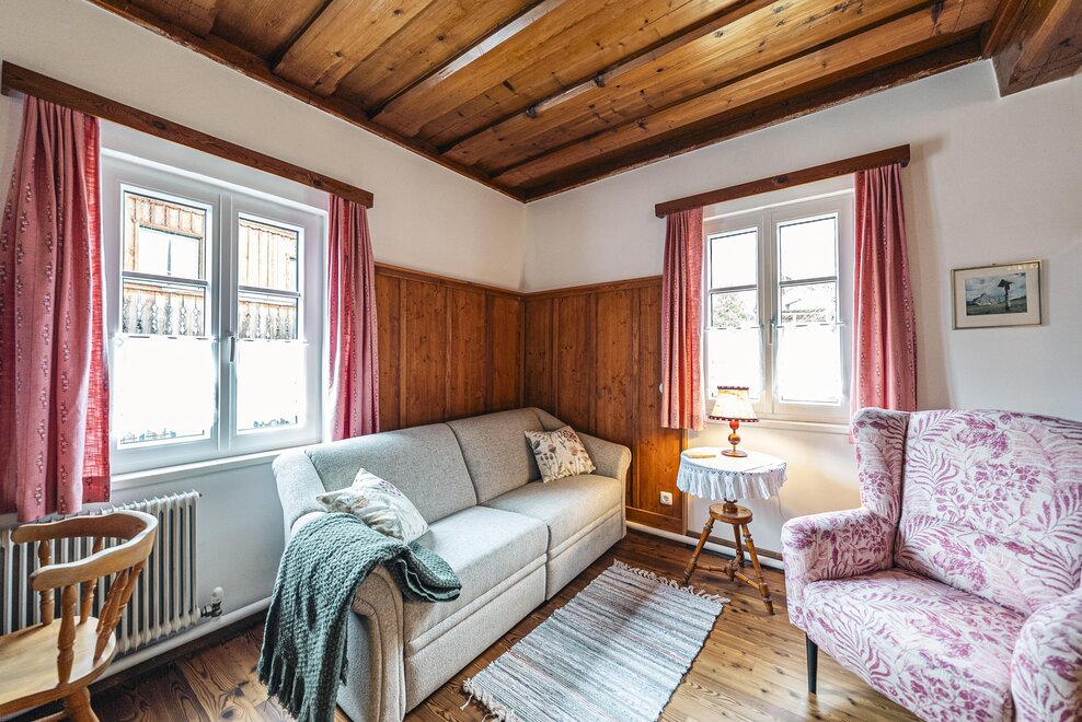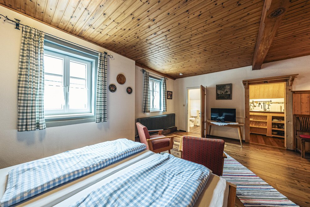Die Richard Strauss Suite ist das größte, im ersten Stock gelegene Appartement im SIEGLGUT. Die 2-Zimmer Suite wurde neu renoviert und ist mit einer großen Küche im süd-westlichen Wohn-/Essraum und einem geräumigen Bad/WC Richtung Loser ausgestattet. Im großen Schlafraum steht ein Doppelbett und ein ausziehbares Sofa für weitere 2 Personen zur Verfügung. Im Wohn-/Essraum befindet sich die neue Küche, ein geräumiger Esstisch und ein gemütliches Sofa, das zum Verweilen einlädt. Die herrlichen alten Holzdecken und -böden und die herrschaftliche Einrichtung strahlen den besonderen Flair unseres alten Gutsgebäudes aus. Ideal auch für Familien (2 Erwachsene plus 2 Kinder) oder Pärchen, die es räumlich großzügiger lieben.