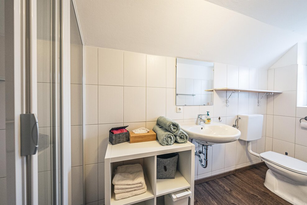 WC, Fließendes Kalt- und Warmwasser, Waschtisch, Dusche, Dusche, WC