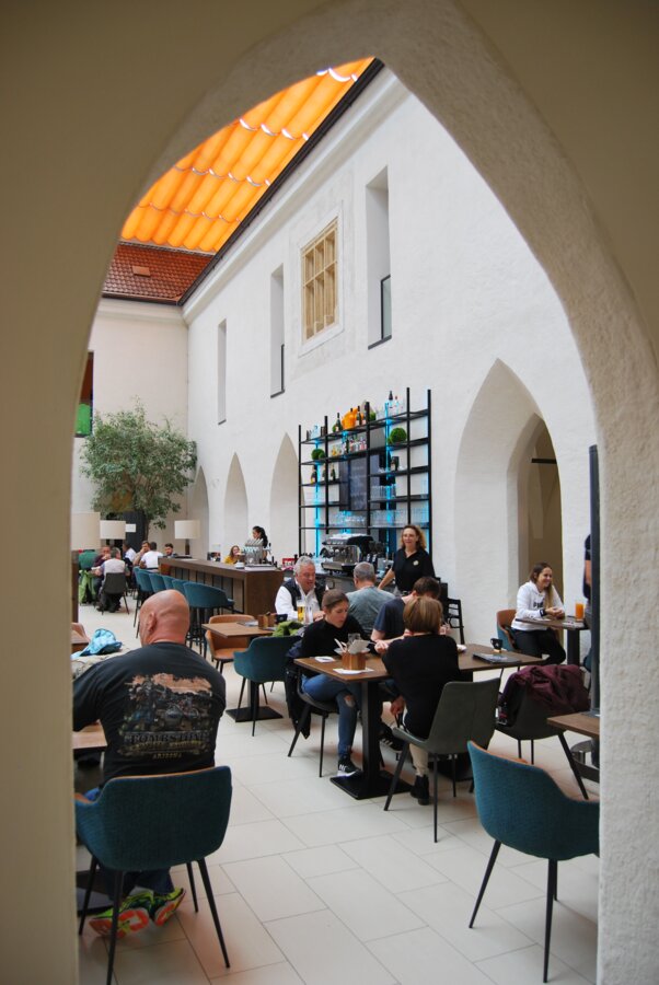 „Die Idee war, ein Shoppingcenter zu kaufen und den Ruhestand zu genießen“, schmunzelt Treu. Das war 1999. Also schaute er sich nach Objekten um, die interessant wären. In Leoben stieß er schließlich auf ein Objekt, das zum Verkauf stand. Und lernte den damaligen Bürgermeister Matthias Konrad kennen. „Aber das Haus, das da frei war, war meiner Meinung nach nicht wirklich geeignet. So hat es zwischendurch so ausgesehen, als würden wir nicht ins Geschäft kommen.“ Doch Leoben ging Treu nicht aus dem Kopf. Und eines Nachts kam ihm die Idee: Wir binden das alte, leer stehende Kloster in unser Projekt mit ein! Man muss dazu wissen: Dieses Klostergebäude ist 800 Jahre alt. Und war damals dementsprechend in die Jahre gekommen – immerhin diente es in all der Zeit zuerst eben als Dominikanerkloster, dann als Schule, Pfarrhof, Getreide- und Salzmagazin, als Amtshaus, Gericht und Gefängnis. Als ältestes noch stehendes Gebäude der ganzen Stadt hat es also viel gesehen und mitgemacht. Mit einer Handskizze für dieses ungewöhnliche neue Shoppingcenter ging Treu zum Herrn Bürgermeister. „Matthias Konrad war sofort begeistert! Der ist ein echter Visionär!“ Konrad unterstützte Treu nach Kräften und dieser begann, den Plan in die Tat umzusetzen. Aber damit begann der Kraftakt: „Das Kloster und die Kirche wurden mit sogenannten Murnockerln (Steine aus dem Murfluß, Anm.) erbaut. Das Problem ist: Wird eines der Murnockerln locker und fällt aus der Mauer, bricht die ganze Mauer zusammen“, schmunzelt Treu. Unendlich viel Zeit musste Treu investieren und eine große Menge Geld. Die Zusammenarbeit mit dem Denkmalschutz war zwar vom beidseitigen Wunsch geprägt, am Ende ein Ergebnis zu haben, dass dem altehrwürdigen Gemäuer Genüge tut, die Auflagen aber klarerweise hoch.