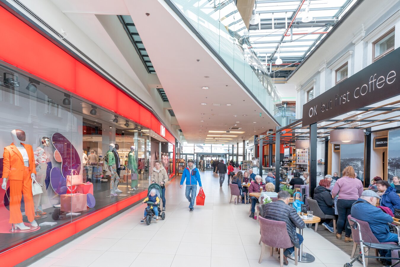 Es hat sich gelohnt: Heute hat man hier mitten in Leoben ein Einkaufszentrum, das sich zurecht einzigartig nennt. Und in dem es lebendig zugeht. Über 70 Shops findet man hier, von der internationalen Modemarke H&M über Kastner&Öhler, Müller, Mediamarkt bis hin zur kleinen, feinen Modeboutique in Familienbesitz, vom Burgerrestaurant bis zur duftenden Bäckerei. Also alles, was das Herz begehrt. Um all das so wahr werden zu lassen, musste Treu nicht nur die alten Gebäude revitalisieren, auch die Einfahrt in die Innenstadt wurde komplett umgekrempelt: Die Straße ist heute unter dem LCS versteckt. „Mit 60“, lacht Treu im Rückblick, „tun sich so was nur Narren an.“ Aber vielleicht genau weil es eine, „schwierige Geburt“ war, wie man auf gut steirisch sagt, nennt er das LCS heute „sein Kind“.