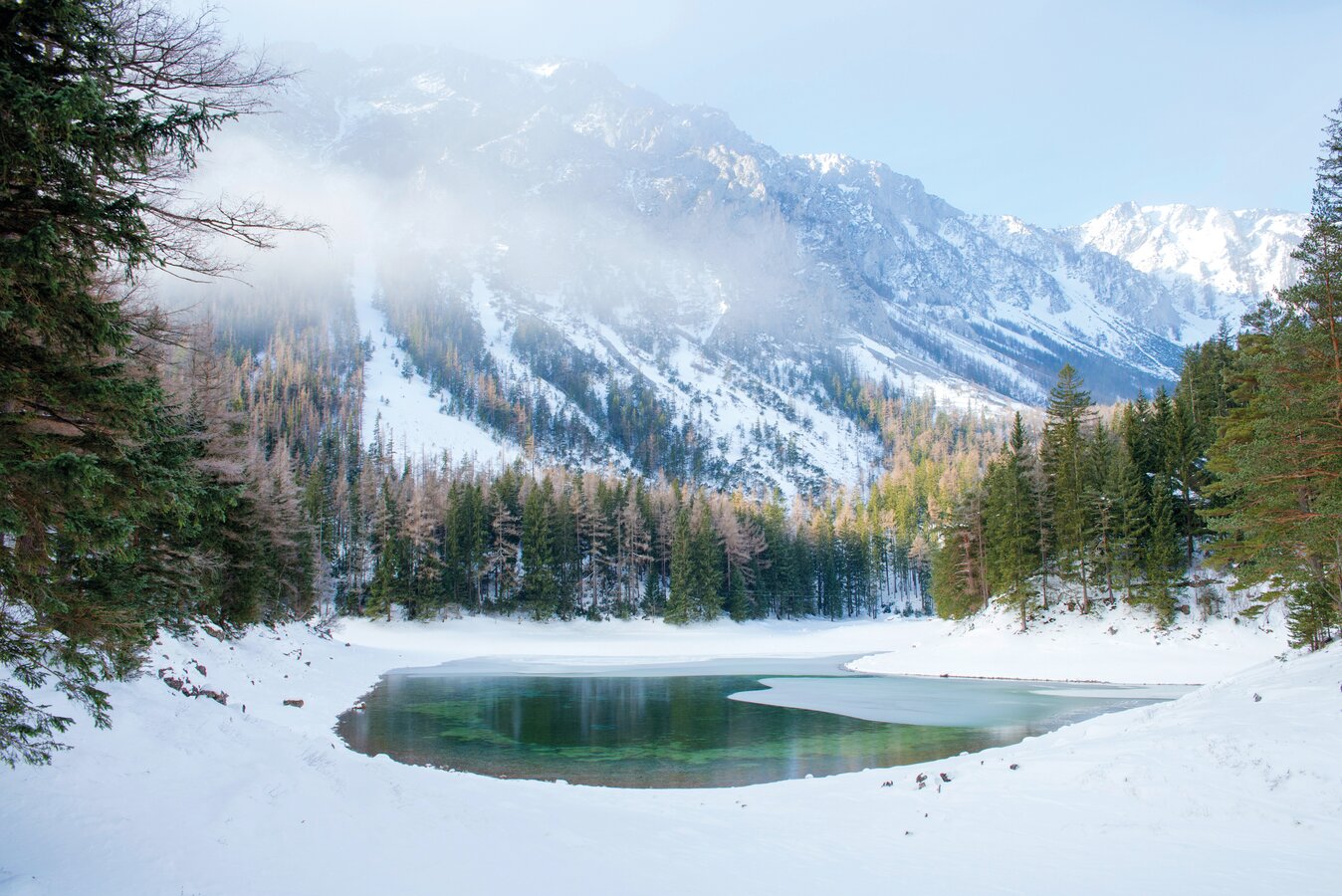 Im Winter wandern? Warum nicht? Nichts ist so romantisch wie eine Schneeschuhwanderung durch verschneite Landschaften, in denen Schneekristalle in allen Farben schillern. Dabei den knirschenden Schnee unter sich spüren und hören und Ausblicke erleben, die an Märchenlandschaften erinnern. Zwischendurch einkehren in eine gemütliche Hütte, am warmen Ofen schmausen und trinken und dann weiterwandern. Bei uns gibt es gleich mehrere Schneeschuhwanderwege, die dieses Erlebnis bieten. Der Schneeschuhtrail Erzwanderweg führt sie auf die Spuren Erzherzog Johanns. Die Wanderung beginnt auf der Präbichl-Passhöhe und führt entlang der Strecke der weltweit einzigartigen Dulnig’schen Erzbahn. Auf ihr wurde einst das Erz des Erzbergs zu den Radwerken, den historischen Hochöfen Vordernbergs transportiert. Der Weg ist gut markiert und bietet viel Abwechslung, sodass er für Familien mit Kindern perfekt geeignet ist. Und wer einkehren will, findet mit dem Gasthof Schwarzer Adler in Vordernberg den perfekten gemütlichen Abschluss seiner Wanderung. Die Mugl wiederum bietet sich an, wenn Ihnen der Sinn nach einer etwas sportlicheren Herausforderung steht, denn der Gipfelanstieg ist doch recht steil. Dafür haben Sie von hier aus einen sensationellen Ausblick. Aber auch, wenn Sie nicht ganz hinauf steigen, sondern einfach zur Schutzhütte wandern, reicht der Ausblick noch vom Hochschwab bis zu den Seckauer Tauern. Außerdem gibt’s dort ein saftiges Ofenbratl. Unbedingt probieren! Wer sich gerne mit Berühmtheiten umgibt, hat die Gelegenheit dazu bei einer Wanderung in die Jassingalm, denn die führt vorbei am berühmten Grünen See. Unglaublich ruhig ist es hier, und die landschaftliche Kulisse atemberaubend. Unterwegs kommt man an zahlreichen Wildtierfutterstellen vorbei und kann mit Glück auf diese scheuen Gefährten treffen. Nach eineinhalb Stunden Gehzeit ist man auf der Jassingalm, wo in der Hütte eine herrliche Jause wartet. Und last but not least empfehlen sich die Marterlwege bei Kammern im Liesingtal. Insgesamt 52 Kilometer gut beschilderte Wanderwege finden Sie hier, von herausfordernden Routen (Spikes nicht vergessen!) bis zu gemütlicheren. Machen Sie einen Halt bei der sehenswerten Ulrichskirche in Seiz, wo Sie, wie auch in Kammern, in urigen Wirtshäusern den Tag ausklingen lassen können. Übrigens: Schneeschuhe können Sie in vielen Wintersporthandlungen oder auch bei Alpfox am Präbichl ausleihen.