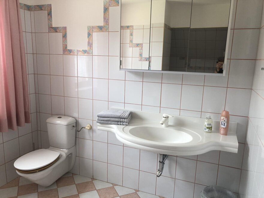 Separates WC, Badewanne, Dusche, WC, Badezimmer Anzahl: 2, Fließendes Kalt- und Warmwasser, Toiletten Anzahl: 2, Bad, Waschtisch, Duschhocker