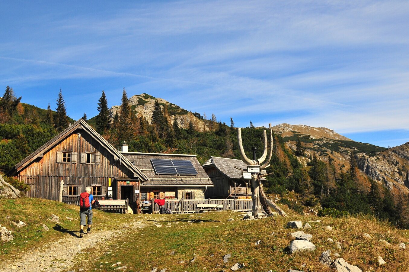 Routenkurzinfo: wunderschöne Almwanderung über das größte zusammenhängende Almgebiet der nördliche Kalkalpen (Schneealm) mit zahlreichen Berghütten, allerdings einem steilen ersten Etappenteil (Karlgraben)