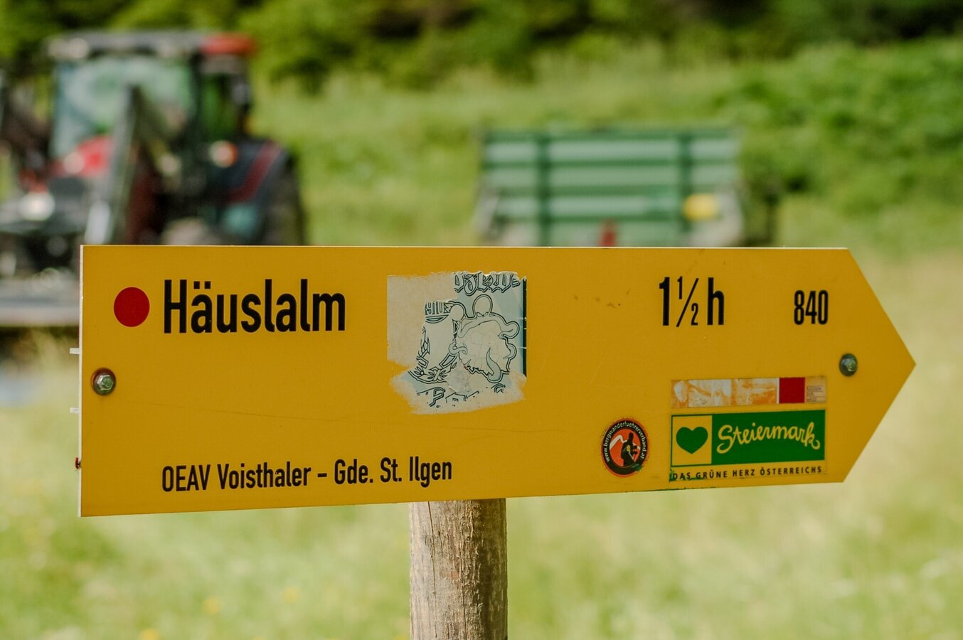 Vom Gasthof Bodenbauer wandern Sie zunächst kurz auf dem Anstiegsweg zum Hochschwab und zweigen nach einer Minute linkshaltend in Richtung Häuslalm ab. Dem gut markierten Steig folgen Sie, einige weitere Forstwege überquerend, durch Wald und Latschenfelder bis zur idyllisch gelegenen Häuslalm.