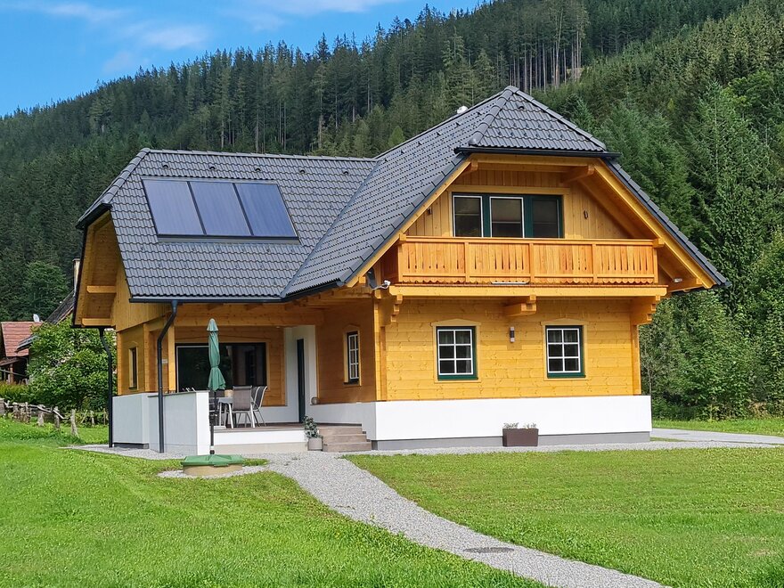 Unsere Romantikblockhäuser (82 m²) sind ausgestattet mit einem Wohnraum mit SAT-TV, Küche mit Bauernsitzecke, zwei romantischen Doppelzimmern mit Balkon, Badezimmer mit integrierter finnischer Sauna, zwei WC's, Terrasse mit Gartenmöbel, Griller und Autoparkplatz.