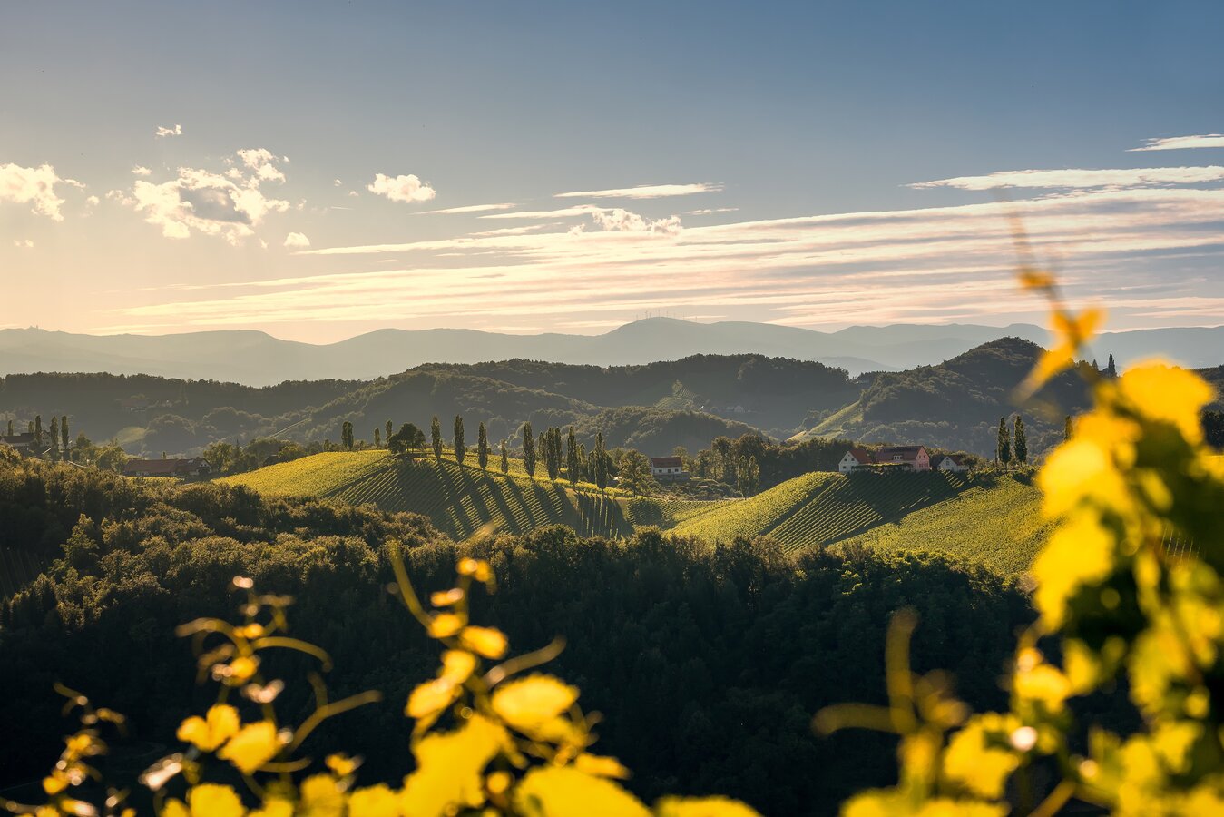 Südsteirische Weinstraße: Die Südsteirische Weinstraße zählt zu den schönsten Panoramastraßen Europas. Sanfte Hügel, endlose Weingärten und charmante Buschenschänken prägen das Landschaftsbild.
