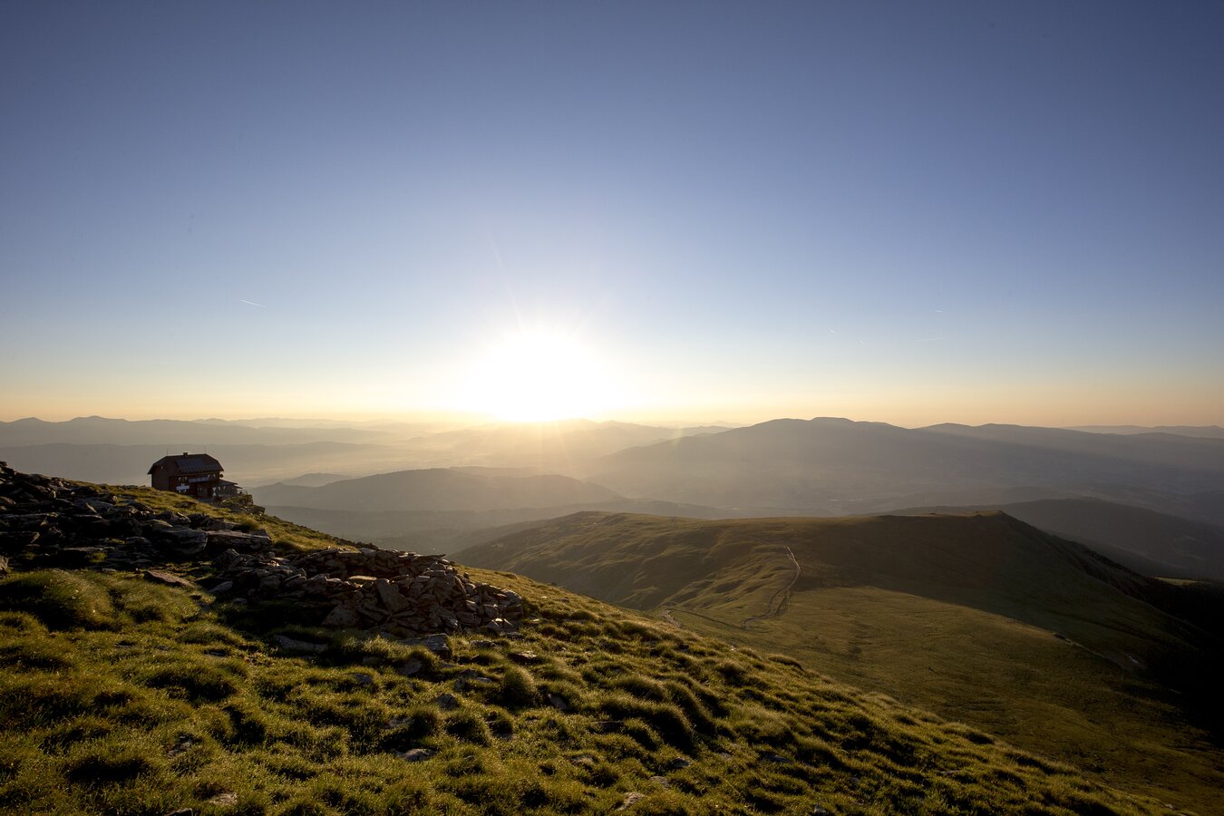 Oberhalb der kleinen historischen Stadt Murau, mit ihrem imposanten Schloss, liegt die Frauenalpe, ein idealer Familienberg. Der breite Rücken ist im Sommer ein stiller Rückzugsort mit Almwiesen, Heidelbeersträuchern und gut markierten Wegen. Ein Geheimtipp: der Sonnenaufgang am Gipfel – still, magisch und mit weitem Blick über die Region Murau. Hütten wie die Murauerhütte sorgen für regionale Schmankerl in familiärer Atmosphäre.