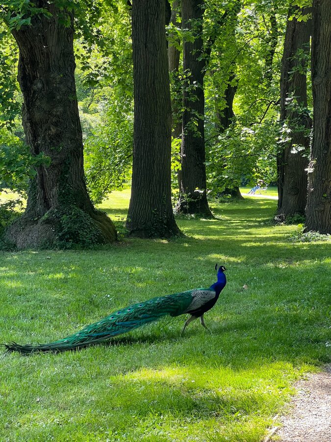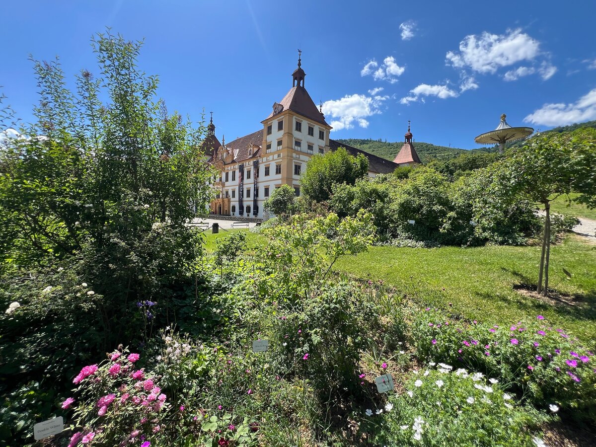 Am westlichen Rand von Graz wartet dann noch ein Prachtstück barocker Stadtarchitektur: Schloss Eggenberg. Der Ehrenhof mit seinen symmetrisch angelegten Gärten, dem Blick auf das Schloss und die gepflegte Parkanlage lädt nicht nur zum Flanieren, sondern auch zum Staunen ein. Nicht ohne Grund gilt das Schloss Eggenberg ebenso als UNESCO-Weltkulturerbe - und die herumstolzierenden Pfauen erhellen unseren Tag sowieso.