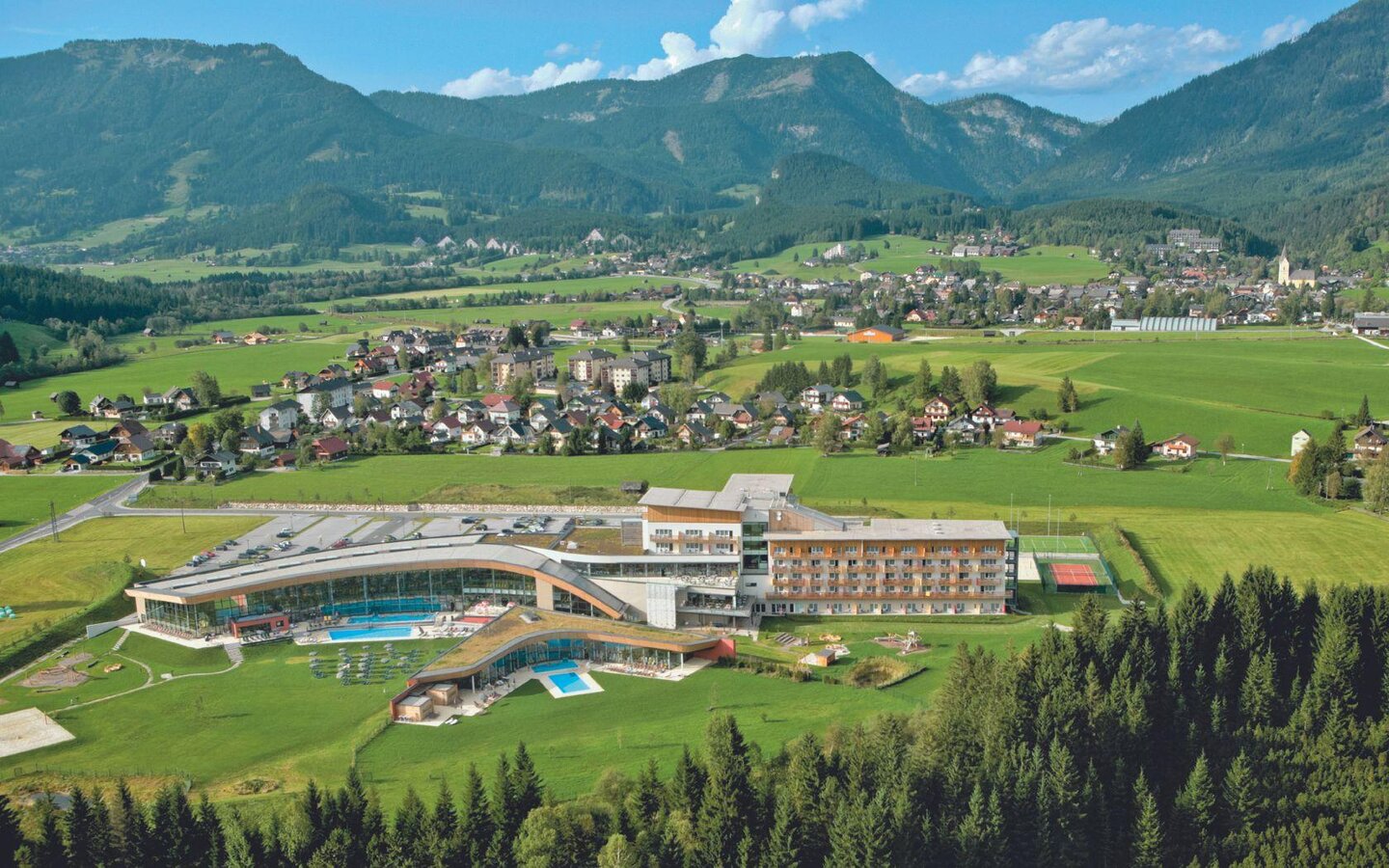 Wer einen imposanten Bergblick aus der Sauna oder dem Wasserbecken genießen möchte, findet in der GrimmingTherme im Ausseerland Salzkammergut die passende Auszeit. Nach rund 10 Gehminuten vom Bahnhof Bad Mitterndorf-Heilbrunn geht es direkt ins Thermenvergnügen.
