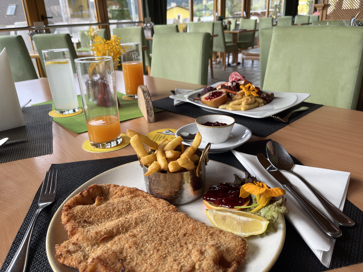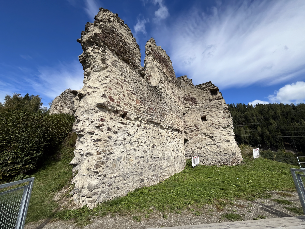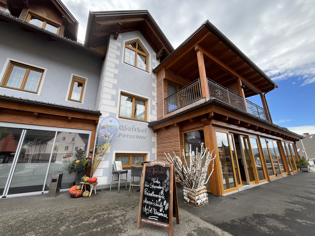 Eine besonders gemütliche Rastmöglichkeit (schon nach wenigen Pedaltritten) bietet das Hotel & Restaurant Perschler mit seiner einladenden Terrasse. Hier lässt sich bei regionaler Küche neue Energie tanken – perfekt, bevor es weiter in Richtung Ruine geht. Der Gastwirt erzählt in einem ruhigen Moment auch gerne über die Geschichte des Hauses und direkt neben dem Parkplatz findet man flauschiges Empfangspersonal. Für Kinder und Radfahrer hat das Hotel alles, was das Herz begehrt.