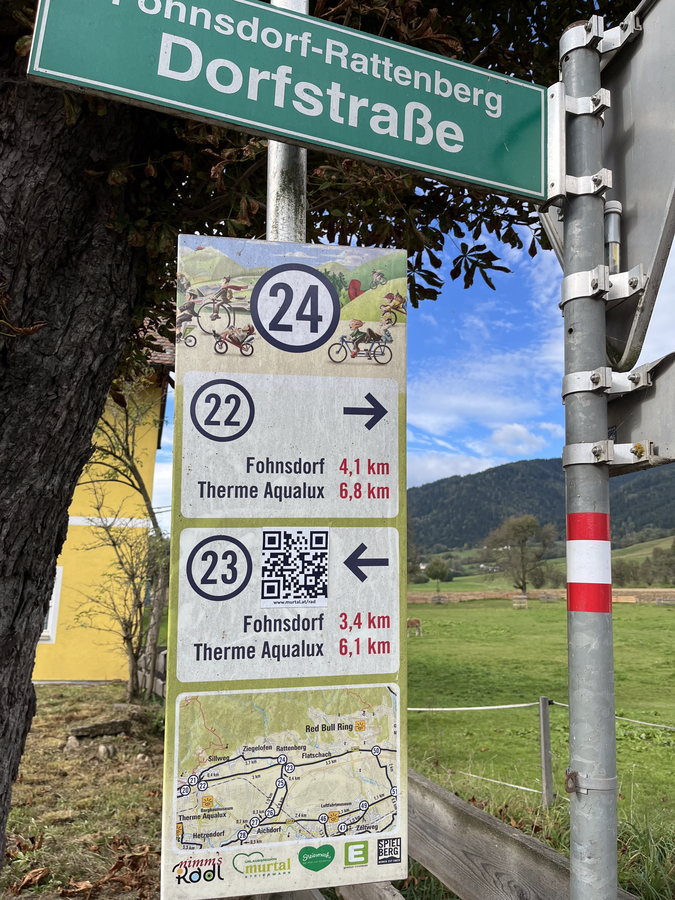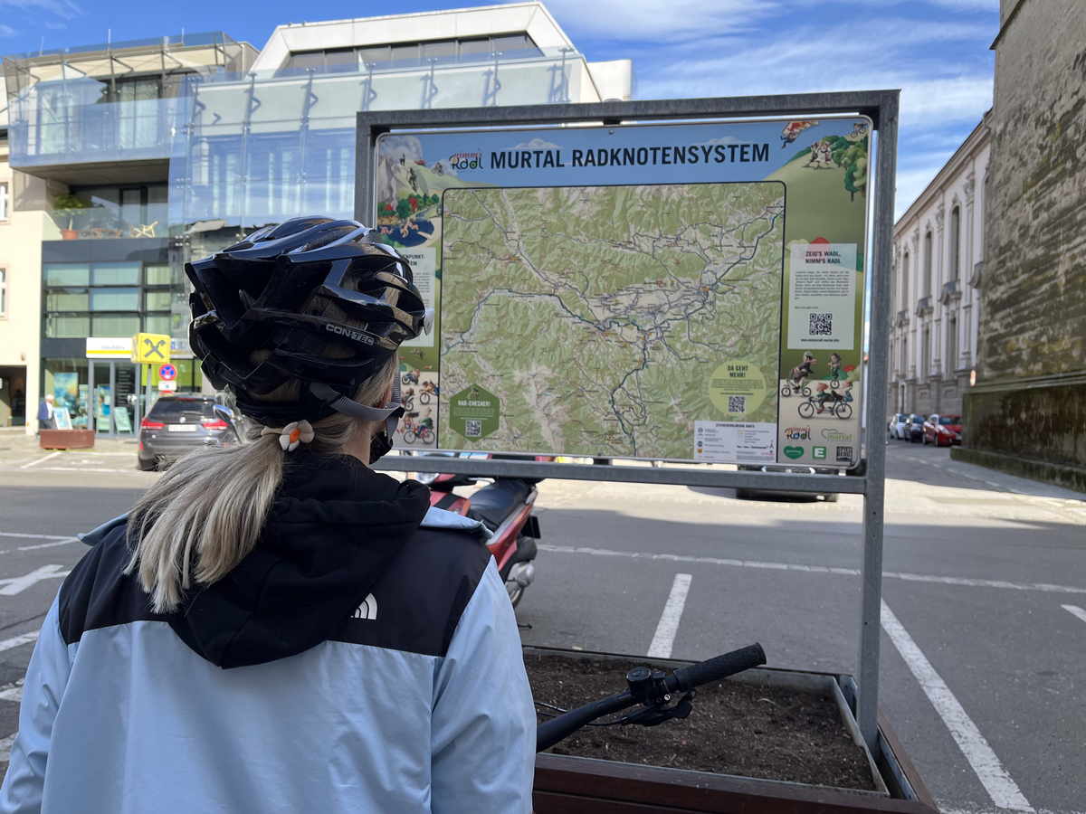 Radfahren im Murtal war noch nie so einfach: Mit dem praktischen Radknotensystem lässt sich jede Tour individuell und flexibel planen. Die großen Übersichtstafeln dienen der Orientierung oder als Ausgangspunkt jeder Radtour. Jede Kreuzung ist mit einer Knotenpunkt-Nummer versehen, und die Wegweiser zeigen stets die nächsten Nummern an – ideal für spontane Abstecher und maßgeschneiderte Routen.