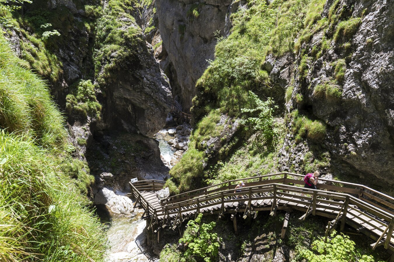 Die Wörschachklamm im Ennstal ist ein beeindruckendes Naturdenkmal und bietet auf rund einem Kilometer Länge ein sicheres, familienfreundliches Abenteuer zwischen hohen Felswänden und rauschendem Wasser.