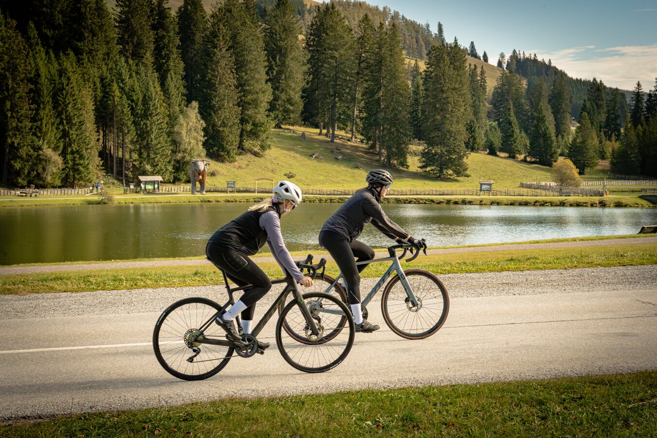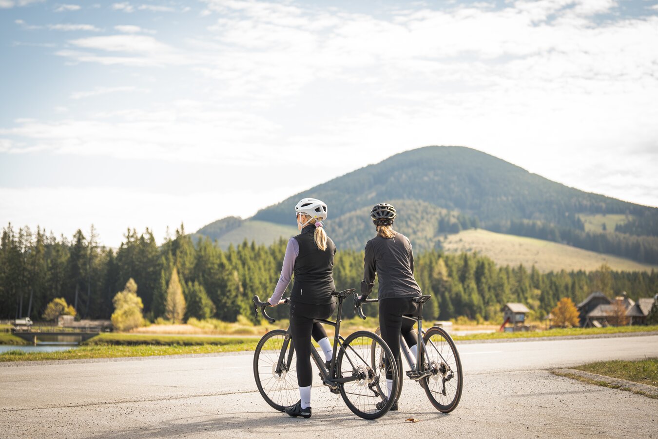 Frisch gestärkt machen wir uns auf die letzte Etappe: Vorbei am beeindruckenden Teichalmsee und den letzten Anstieg hinauf zum Almwellness Hotel Pierer. Trotz müder Beine schaffen wir es mit Leichtigkeit zurück zum Ausgangspunkt unserer Tour. Hier geben wir unsere Räder wieder ab und bedanken uns bei Anna und Nicole für die mehr als gelungene Rennradtour durch den Naturpark Almenland – ein entspannter Abschluss für einen anspruchsvollen, aber lohnenden Tag in der Oststeiermark.