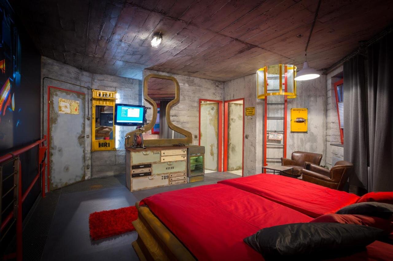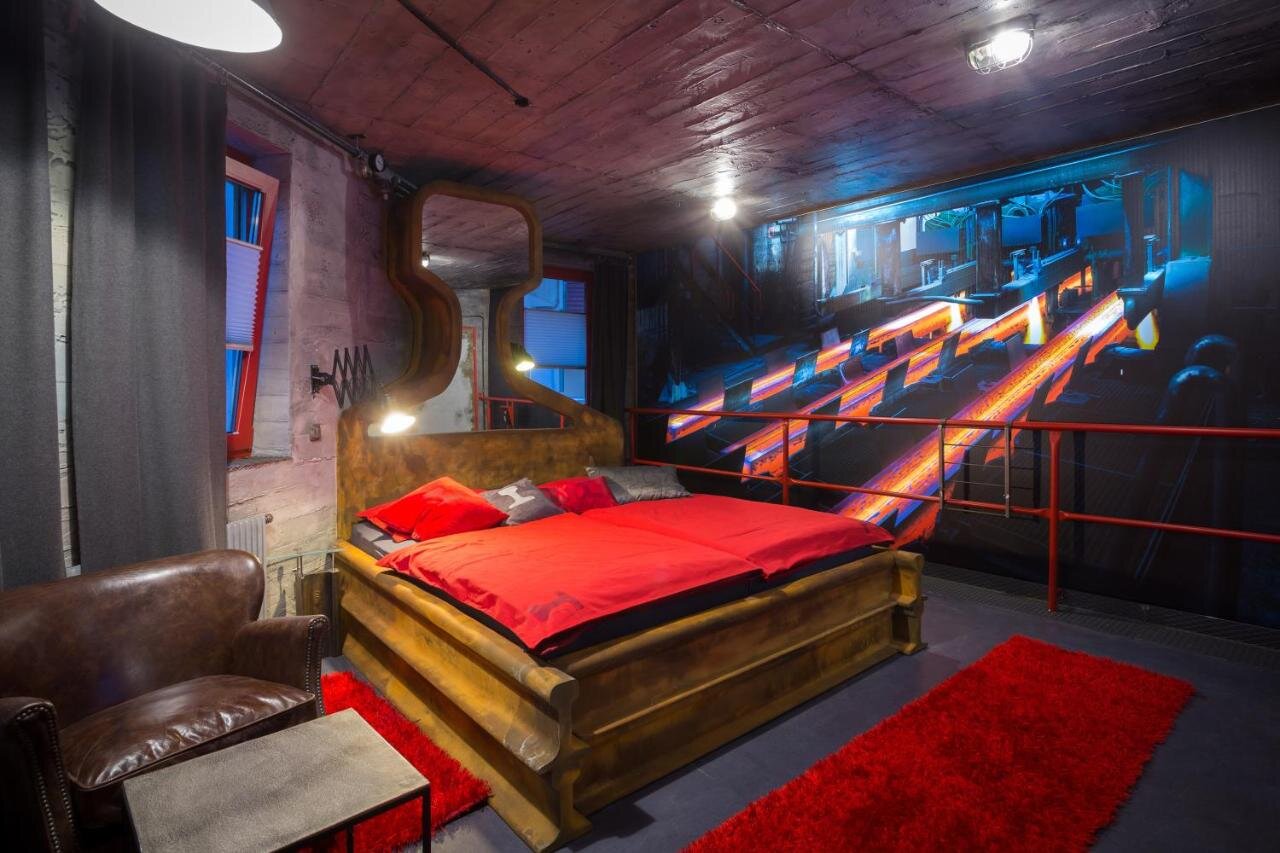 Willkommen in Leoben wo Gäste ein Quartier mit echtem Stahlcharme erwartet! Im Industrieromantikzimmer des Hotel Kongress Leoben trifft Hollywood-Glamour auf rauen Industrieflair – eine Hommage an die glühenden Hochöfen der Region.