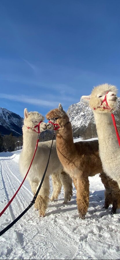 Wandern mit Alpakas: Wer noch auf der Suche nach einem Wanderbuddy ist, kann sich den flauschigsten Spazierfreund der Welt ausborgen: Auf dem Alpakas Knappenhof oder bei dem Sulmtal Alpakas beispielsweise können die süßen Tiere auf eine Wanderung oder einen gemütlichen Spaziergang durch den Wald mitgenommen werden.