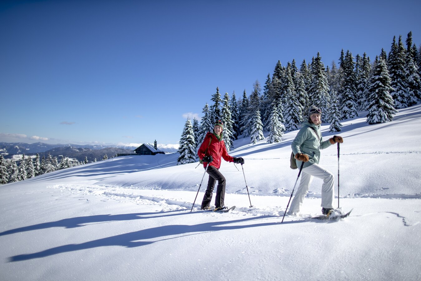 Gut zu wissen: Das Schneeschuhwandern ist ganz einfach zu erlernen und beschränkt sich auf wenig Ausrüstung. Im Grunde ist es wie Winterwandern. Der einzige Unterschied besteht darin, dass die großen Teller unter den Füßen das Einsinken in den Schnee verhindern.