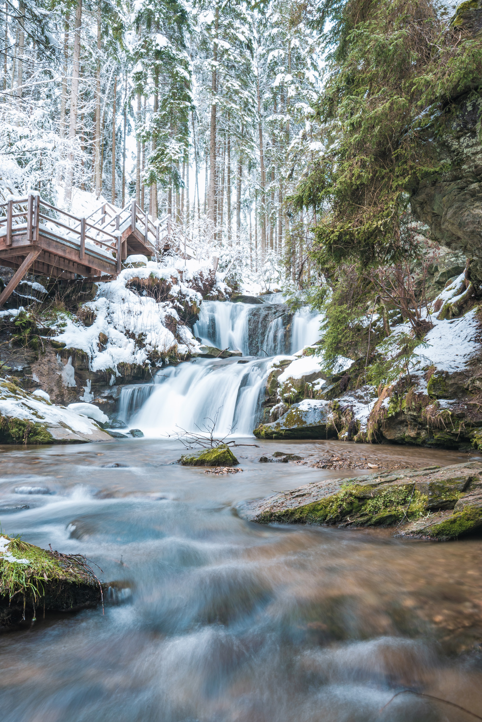 Kaskadenwasserfall in der Graggerschlucht im Winter