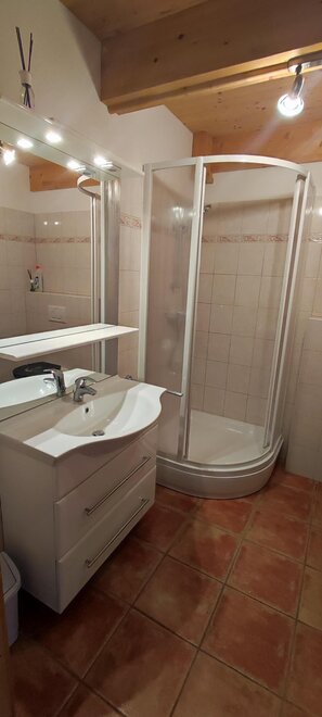 Bad, WC, Dusche, Badewanne, Doppelwaschbecken, Dusche, WC, Fließendes Kalt- und Warmwasser, Toiletten Anzahl: 2, Waschtisch, Badezimmer Anzahl: 2, Bad, Dusche oder Badewanne