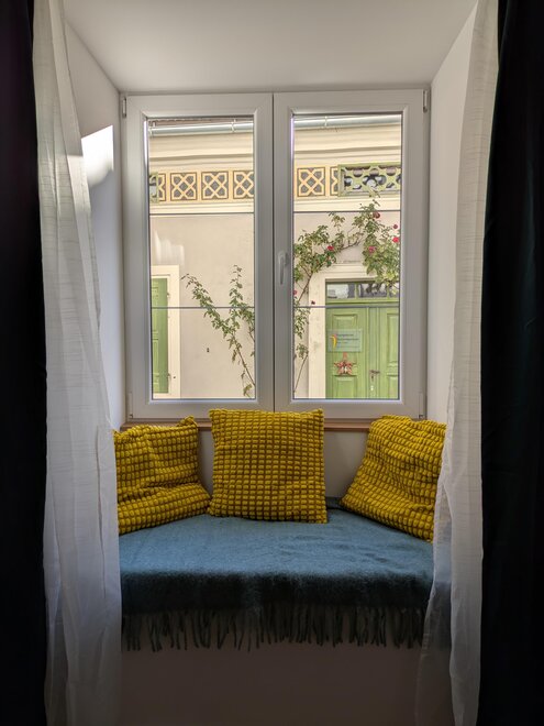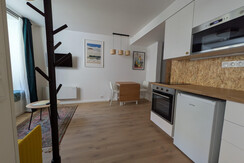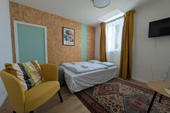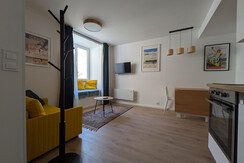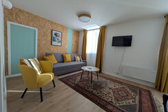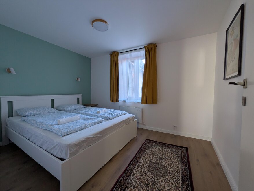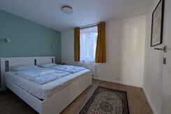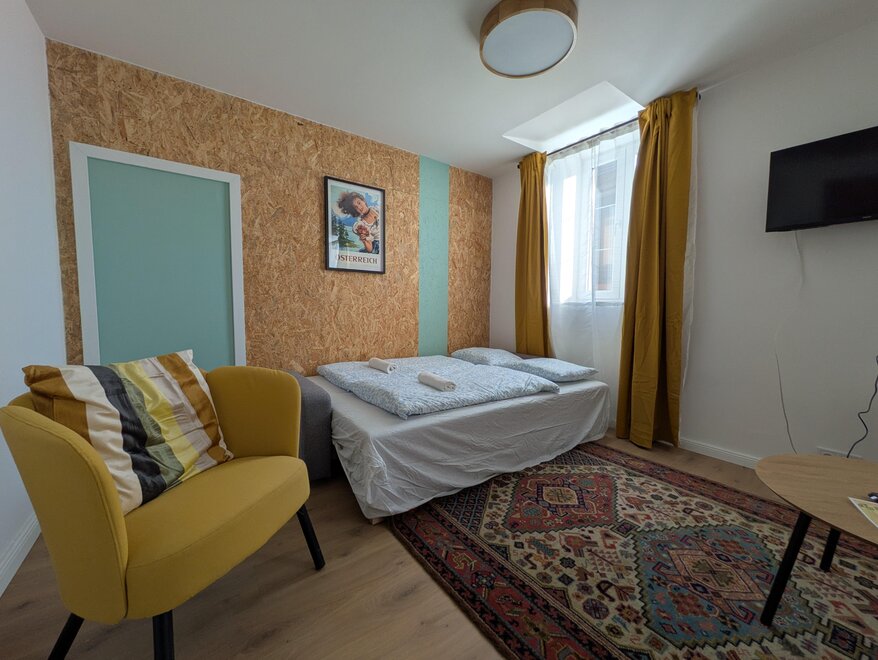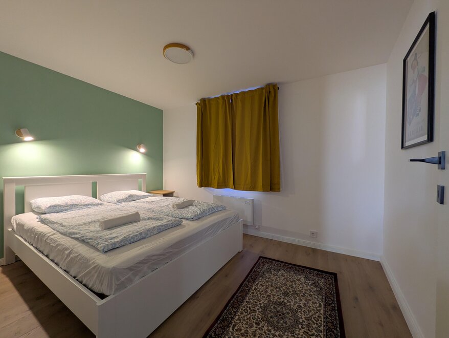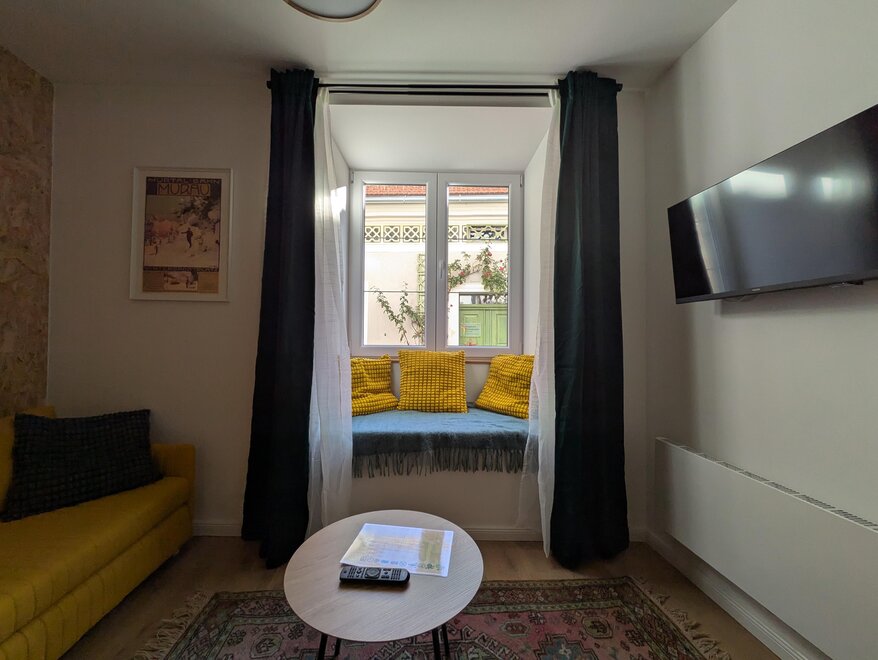 Eine charmante und geräumige 40 m² große Wohnung mit einem Schlafzimmer, die sich im ersten Stock befindet. Die Wohnung verfügt über ein eigenes Badezimmer mit Dusche und WC, das Komfort und Bequemlichkeit bietet. Die voll ausgestattete Küche umfasst einen Herd, einen Backofen, einen Kühlschrank sowie alle notwendigen Utensilien zum Kochen und Essen. Im Schlafzimmer befindet sich ein Queensize-Bett für zwei Personen, während das Wohnzimmer mit einem ausziehbaren Schlafsofa ausgestattet ist, das bis zu zwei weitere Gäste beherbergen kann. Weitere Highlights sind ein Esstisch und ein Flachbildfernseher. Hell und einladend, bietet diese Wohnung ideal für bis zu vier Personen.