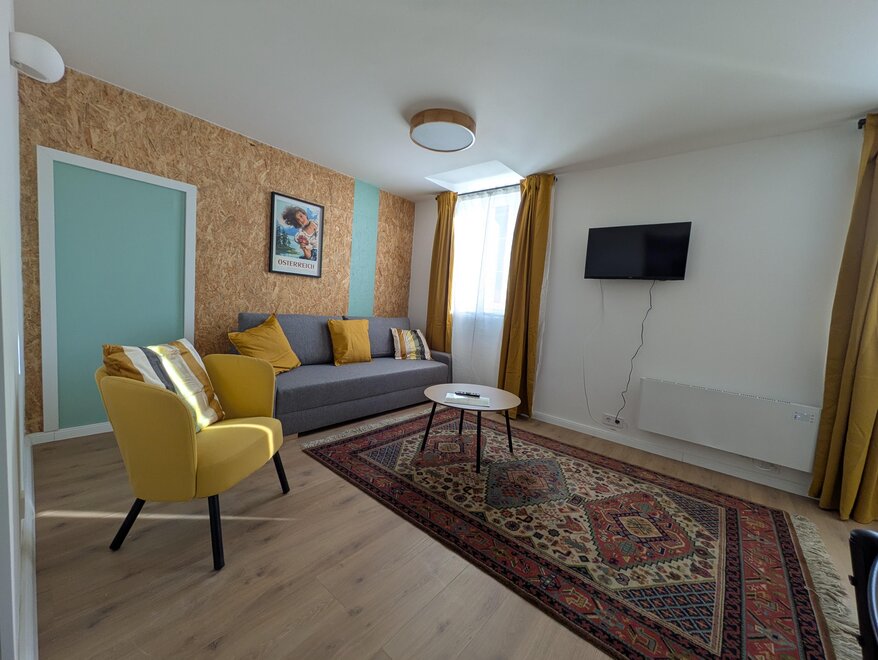 Küchengeräte, Haarföhn, Wohnzimmer, Familienzimmer / app., Nichtraucher Zimmer/App./Whg., Bügeleisen, Handtücher vorhanden, Lärmgeschütztes Zimmer/App., Elektroherd, Rauchmelder, Neuwertiges Zimmer/App., WiFi, Separate Schlafzimmer: 1, Wohnküche, Bettwäsche vorhanden, Toaster, Wasserkocher, Geschirrspülbecken, Kochmöglichkeiten, Schrank, Gefrierfach, Fernseher, Heizung, Ruhiges Zimmer/Appartement, Küche, Decken, Mikrowelle, Moderne Möblierung, Geschirr vorhanden, Wohn-/Schlafräume getrennt, Grundausstattung (Handtücher, Bettwäsche, Seife, Toilettenpapier), Steckdose in Bettnähe, Privater Eingang, Kühlschrank, Backofen