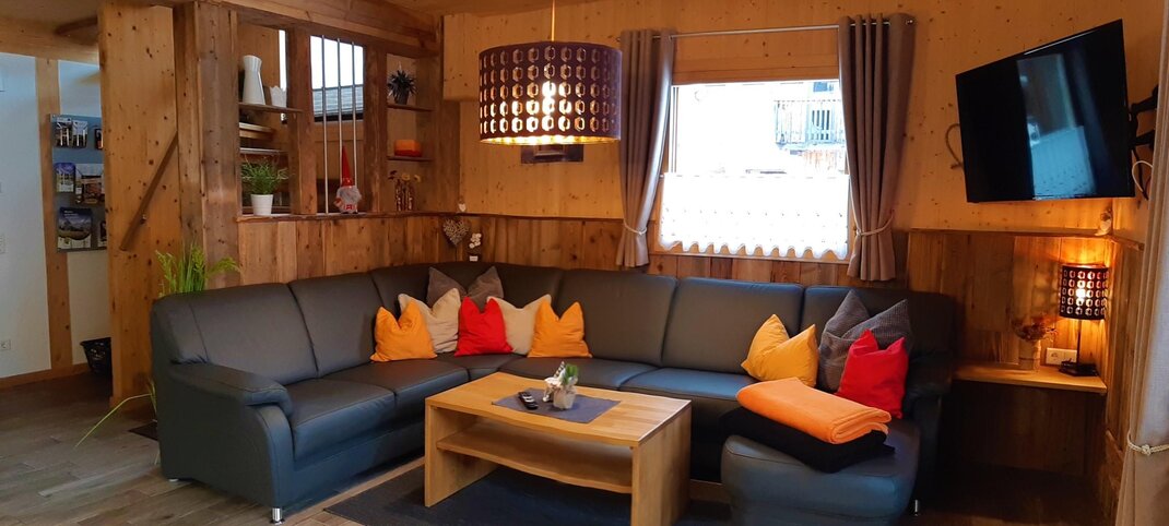 - Wohnbereich: gemütliche, große Couch, Fernseher mit Dolby Surround