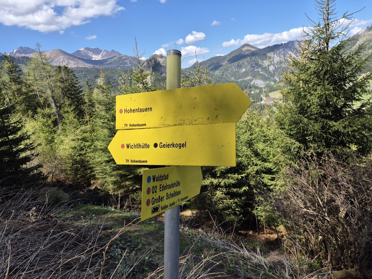 Startpunkt unserer Tour ist der große Parkplatz auf der Passhöhe in Hohentauern. Von dort folgen wir für wenige Schritte der B114 westwärts, bevor wir auf einen Forstweg abbiegen, der gleichzeitig Teil des Wanderwegs 02A ist. In gleichmäßigem Anstieg geht es nun etwa eine Stunde lang bergauf – Kurve um Kurve, Höhenmeter für Höhenmeter. Auf rund 1.670 Metern Seehöhe verlassen wir den Forstweg und queren die Piste bis zur Wichtelhütte, wo eine kurze Trinkpause einlegt werden kann.