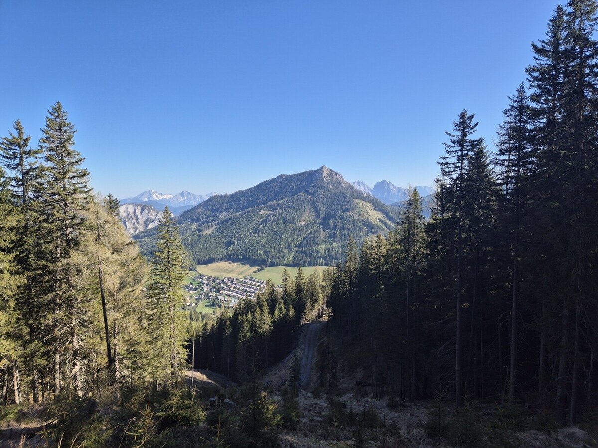 Für den Abstieg wählen wir wieder die Aufstiegsroute. Kurz vor der Wichtelhütte gäbe es zwar die Möglichkeit, über die Piste steiler abzusteigen oder eine Abkürzung zu nehmen – wir entscheiden uns jedoch für die gelenkschonende Variante über den Forstweg. Nach etwa 5,5 Stunden Gehzeit kommen wir wieder am Ausgangspunkt an.