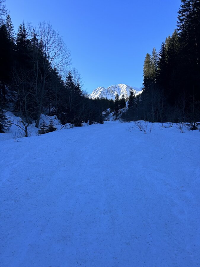 wieder auf der Forststraße angelangt, geht es entweder auf der Straße oder mit kleinen Abkürzungen kurz durch lichten Wald und über eine Lichtung bis zur Forststraße auf etwa 1600m. Wir folgen der Forststraße Richtung Braunkar zwischen Geierkogel und Triebenfeldkogel.
