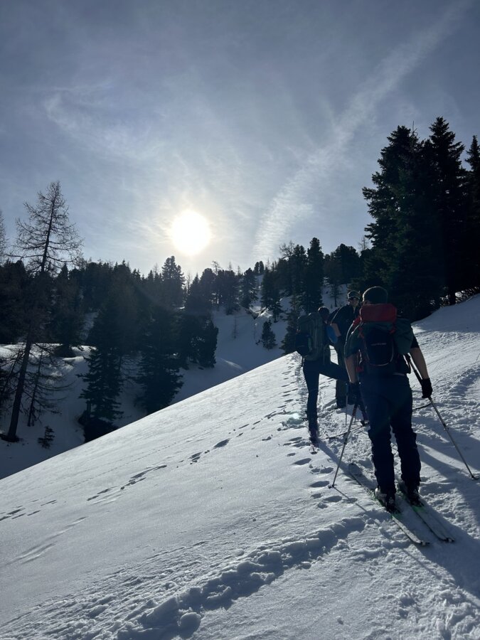 Abfahrt wie Aufstieg bis zum Forstweg auf 1340m. Danach ist es besser bis zur Wiese hinter dem Bauernhof Braun auf dem Forstweg zu bleiben.