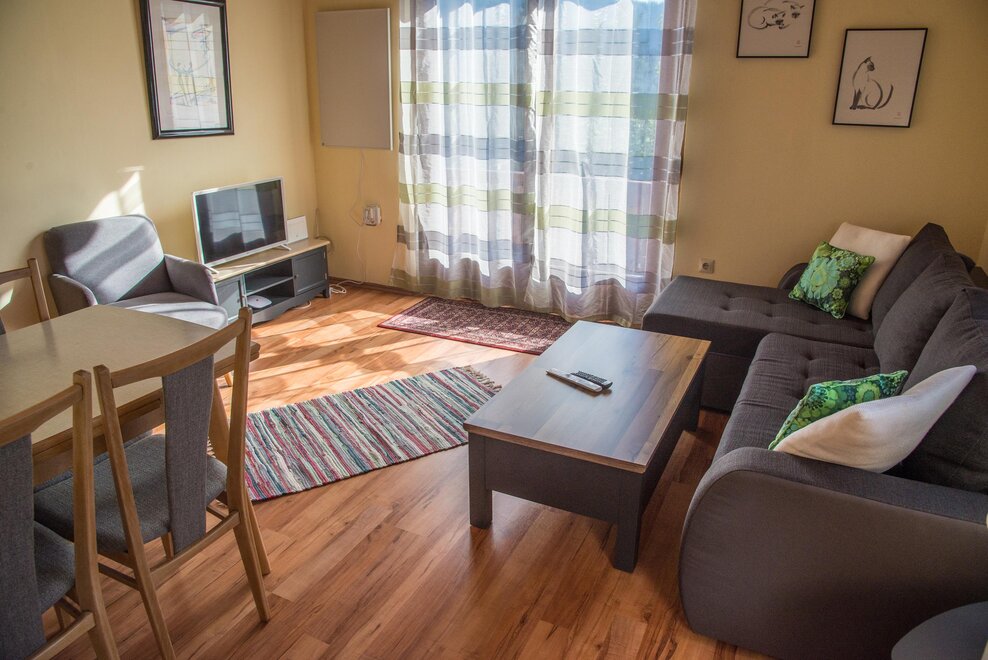 Separate Schlafzimmer: 2, Fußende der Betten offen, Internetanschlussmöglichkeit, Holz- oder Parkettboden, Küchenzeile, Balkonmöbel, Küchengeräte, Gefrierfach, TV auf Wunsch, Abstellraum, Mikrowelle, Garten, Schrank, Wintergarten, WiFi, Kaffee-Maschine, Grundausstattung (Handtücher, Bettwäsche, Seife, Toilettenpapier), Nichtraucher Zimmer/App./Whg., Geschirrspülmaschine, Balkon (teilweise), Max. Haustiere: 1, Tisch- und Küchenwäsche, Toaster, Wasserkocher, Waschmaschinenbenutzung, Geschirr vorhanden, Gartenmöbel, Haarföhn, Kühlschrank, Sitzgruppe