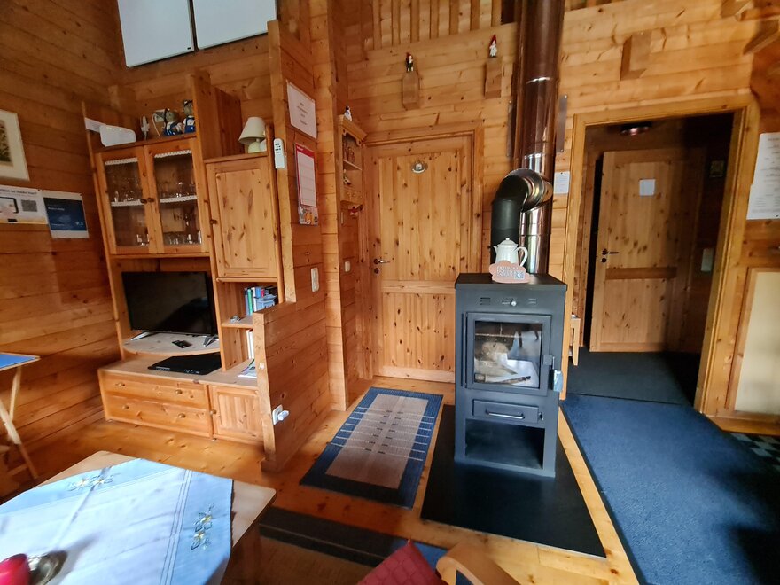 Die schönen Abendstunden verbringt ihr in einem netten Wohnzimmer mit Leseecke mit einem knisternden Feuer im Ofen. Natürlich stehen euch auch Gasheizung und Elektroheizer zur Verfügung. Das Holz liegt bereit.