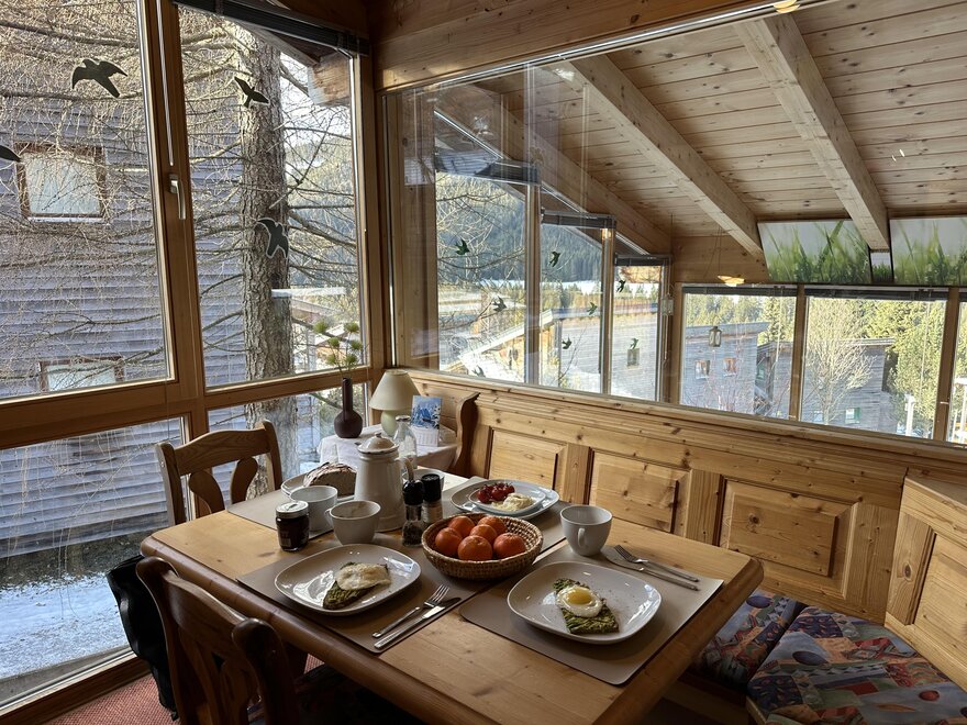 Gemütlich ist das Haus eingerichtet. Eine Küche mit sehr guter Ausstattung steht euch für eure Versorgung zur Verfügung. Am Essbereich habt ihr die Möglichkeit gemütliche Stunden entspannt genießen. Der PANORAMA-Wintergarten und eine teilüberdachte Terrasse ermöglichen euch, bei jedem Wetter die wunderschöne Bergwelt zu erleben.