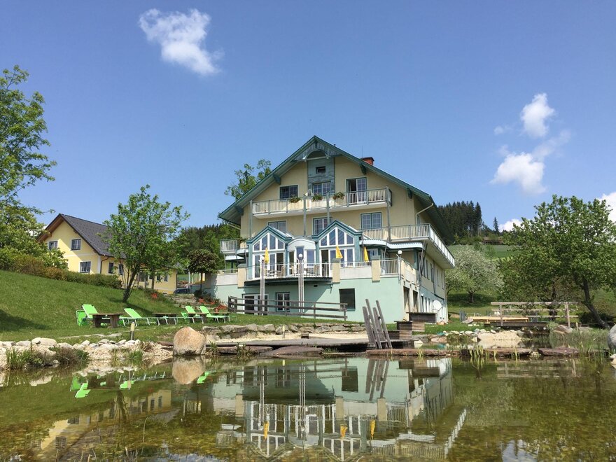 Wir sind ein Kraftplatz zum Wohlfühlen. Das weitläufige Hochplateau begeistert ganzjährig mit einem sonnenreichen Erholungs- und Sportangebot, bestehend aus unserem stilvollen SPA, Schwimmbiotop, Tennisplatz, weitläufigen Lauf- und Walkingmöglichkeiten, Panoramawanderwegen, Langlaufloipen und einem nahen schneesicheren Familienskigebiet.