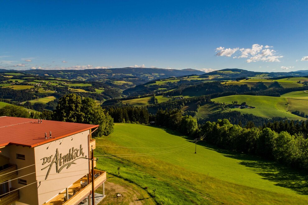 Wie der Name schon sagt. Oben, auf 1000 m Almhöhe. Wo die Augen Ruhe jausnen und die Herzerl hüpfen. Wo sich das Leben und die Natur von seiner ungeschminkten Seite zeigt und die Gäste nach Strich und Faden verwöhnt werden. Wo man es ehrlich miteinander meint. Im Almblick. Im Vierstern-Hotel im oststeirischen Joglland.
