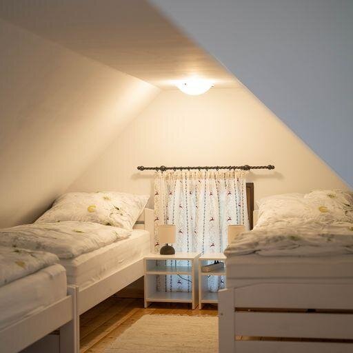 Dann... Heim kommen. Wohl fühlen. Entspannen und genießen. In der geräumigen Hütte mit gemütlichem Kachelofen, einem urigen großen Tisch, einer Couch und einem Flachbild TV. Der Schlafbereich befindet sich im Dachgeschoss. Er ist geteilt auf drei Zimmer. Ein Doppelzimmer, ein Dreibettzimmer mit zusätzlichem Kinderbett und ein kleineres Vorzimmer mit Doppelcouch und neuem Topper. Eine barrierefreie Schlafmöglichkeit gibt es im Wohnbereich auf der großen Ausziehcouch.
