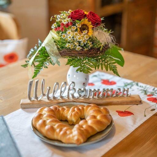 Umgeben von Wiesen, Wald und einer gepflegten, bäuerlichen Landschaft genießt man viel Ruhe abseits von Verkehr und Hektik, inmitten der Natur.