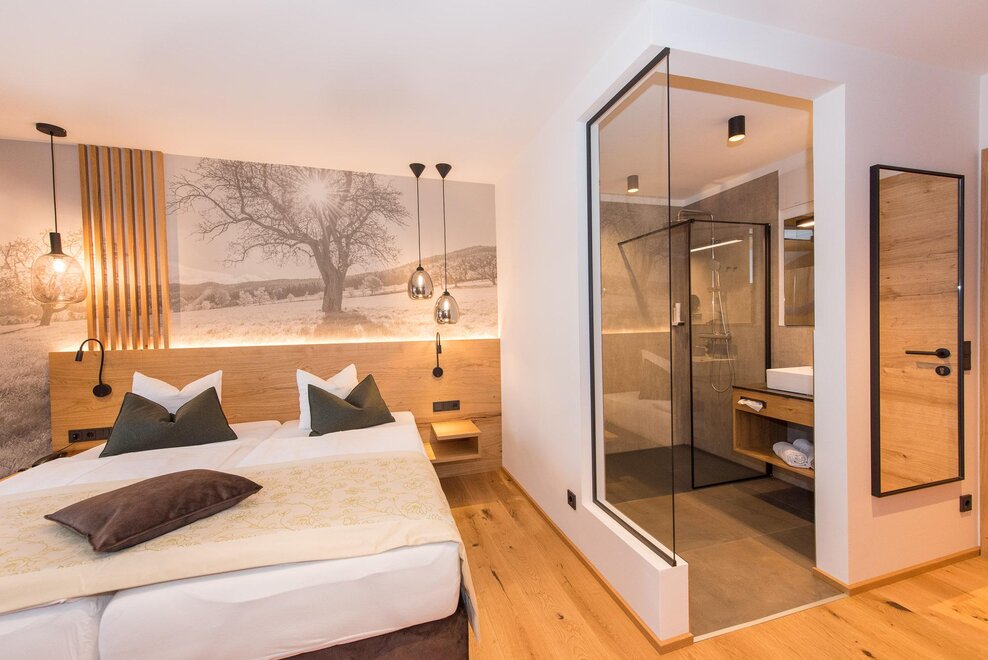 Aufhübschen. Entstanden ist ein charmant chices familiengeführtes Vier-Sterne-Hotel in privilegierter Lage. Eine Lage, die sich als Ausgangspunkt für Wanderungen bestens eignet. Aber auch Bikern das Herz und den Puls höherschlagen lässt.