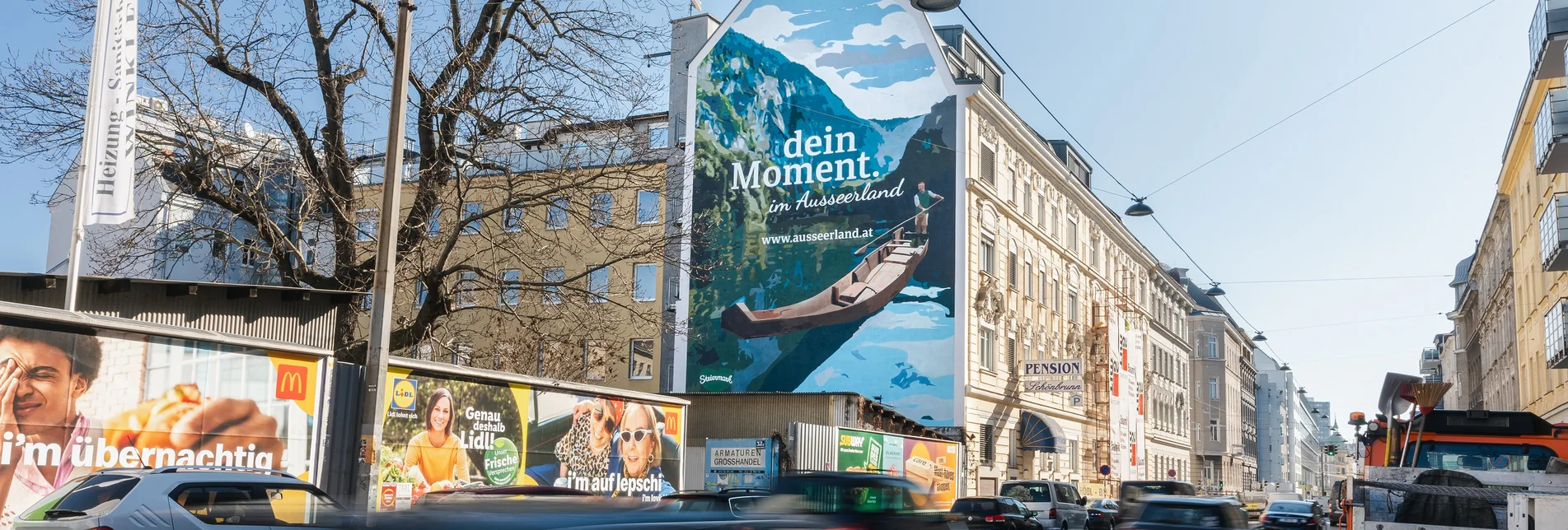 Pamela Binder, Geschäftsführerin des Tourismusverbandes, zeigt sich stolz: “Rechtzeitig vor dem Steiermark Frühling in Wien möchten wir mit unserem großflächigen Street Art Mural das einzigartige Natur- und Kulturerlebnis des Ausseerlandes direkt in die Bundeshauptstadt bringen. Die Gestaltung der Hausfassade in der Schönbrunner Schlossstraße ist eine Einladung, unsere Region mit all ihren Facetten zu entdecken – sei es beim traditionellen Plättenfahren, beim Wandern in der beeindruckenden Berglandschaft oder beim Eintauchen in unsere gelebte Tradition. In Zusammenarbeit mit der Firma Popp Vision haben wir ein starkes visuelles Zeichen gesetzt, das die Sehnsucht nach unvergesslichen Momenten in der Natur weckt. Wir freuen uns darauf, noch mehr Menschen für die Schönheit des Ausseerlands zu begeistern“